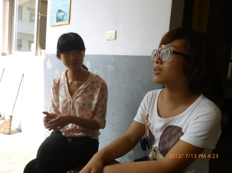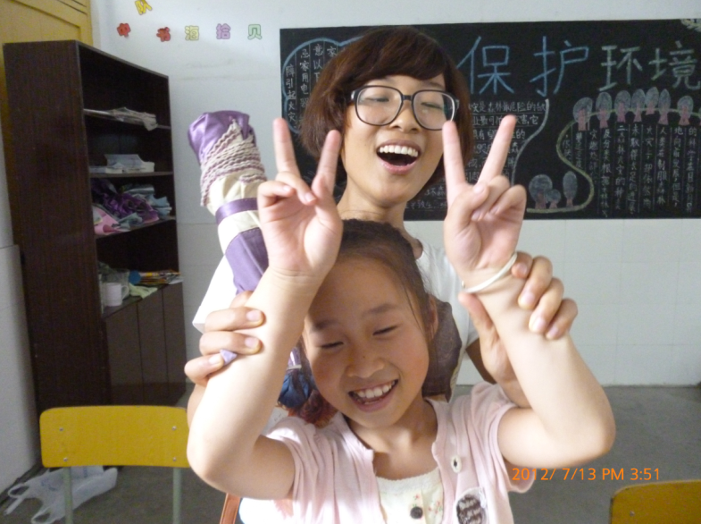 杨霞学姐是昨天傍晚的时候到这边的,晚上在寝室她跟我们聊了很多,了解了这边的基本情况,针对一些问题适当地给我们提了一些建议。今天一大早她就起床和我们一起吃早餐,随后她又去教室听我们上课。低年级手工课的时候,她坐在一旁协助两名队友一起教孩子们折郁金香。对于孩子们提出的问题,她都耐心地教他们,很有老师的风范。中午午休的时候,上届实践队的队长慧珍学姐顶着烈日,手提两大袋东西气喘吁吁地来到了寝室。休息片刻后,两位学姐就去了教学楼。下午,学姐们去了各个教室,认真聆听队友们上课,课间休息的时候,她们会和孩子们聊天。当孩子们看到学姐走进教室时,他们的心里别提有多激动,上课也比平常积极多了,当然学姐们也很是享受与孩子们交流的过程。即使分别了一年,彼此间的感情却没有随之淡化。学姐依然清楚地记得这帮孩子,孩子们也同样记得他们亲爱的老师。