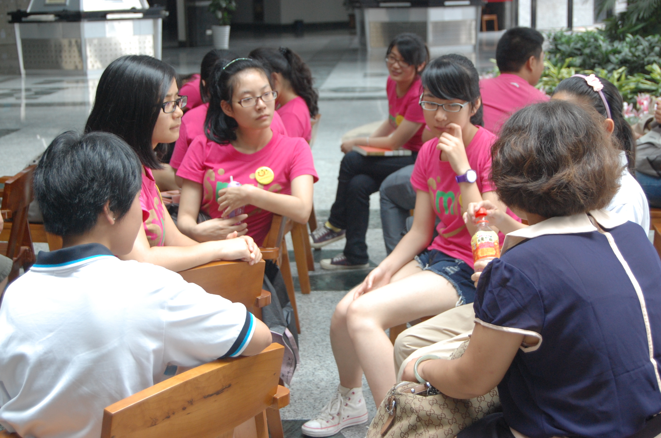 育英图书馆一楼。队员们纷纷积极的参与到其中来,踊跃的搬来椅子,并一一排列好。随着时间推移,小营员陆陆续续的来了。队员们热情地和他们打招呼,很快就聊得不亦乐乎。在队员们和小营员们熟悉了之后,就送他们到了宿舍。接下来余下的队员们就负责布置场地,吹气球的,打结的,粘贴的等等分工明确。晚上,队员们又来到小营员们的寝室,帮他们整理物品。最后,整理完寝室,大家又要排练明天早上开营仪式上的表演。