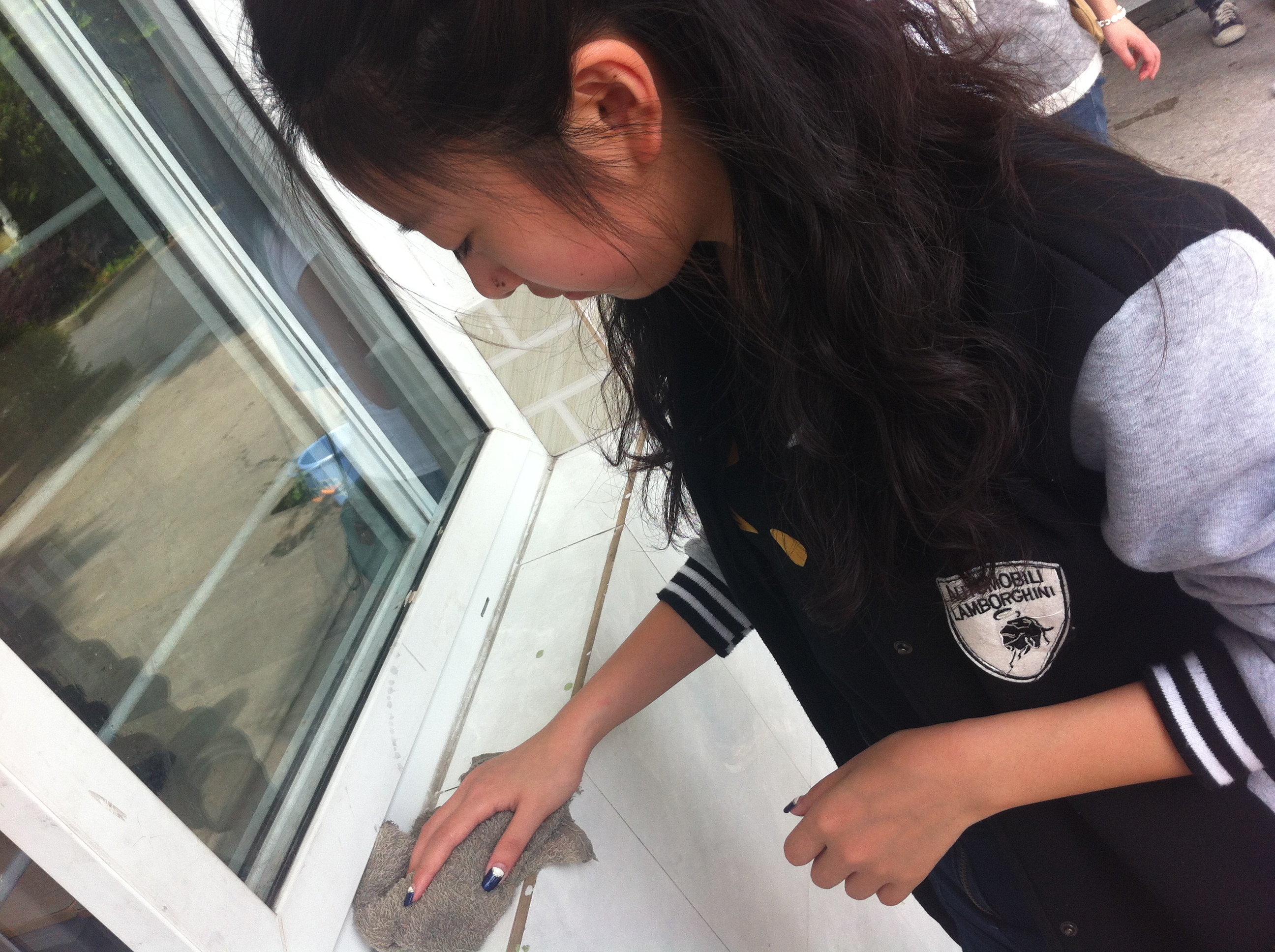 在日头正大的午后,同学们放弃了休息时间,给茶山二小的孩子带去了整洁,带去了快乐。