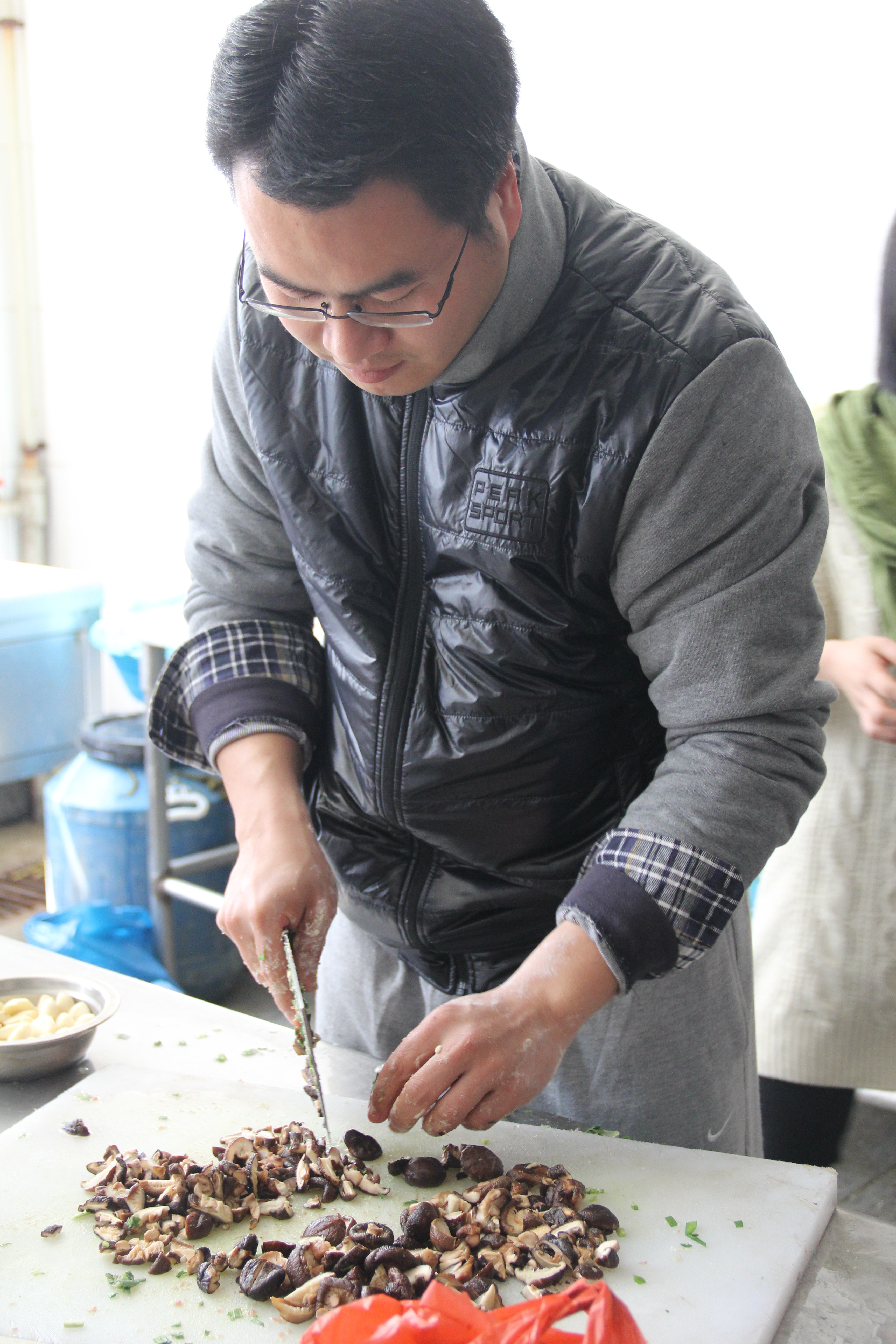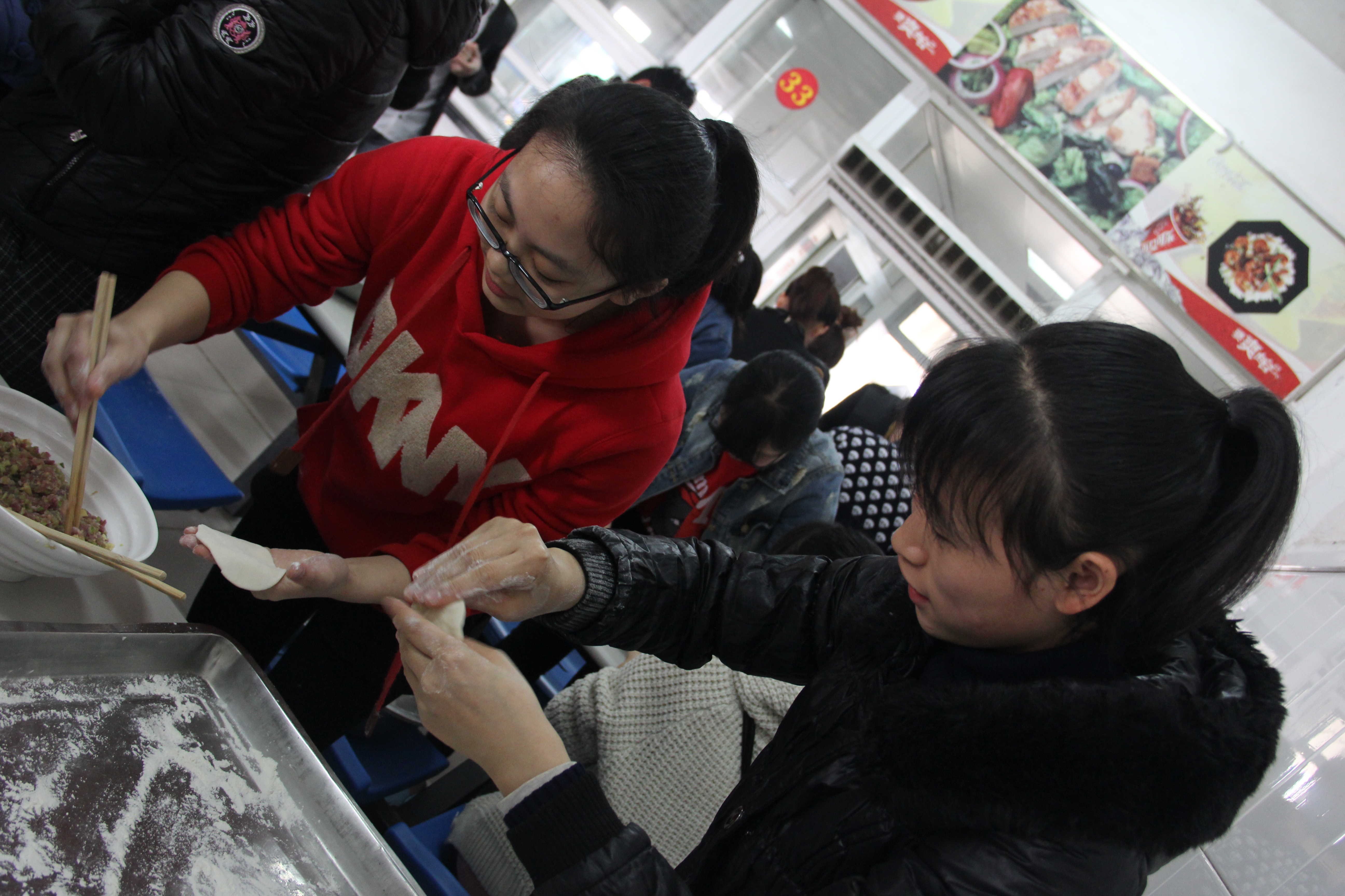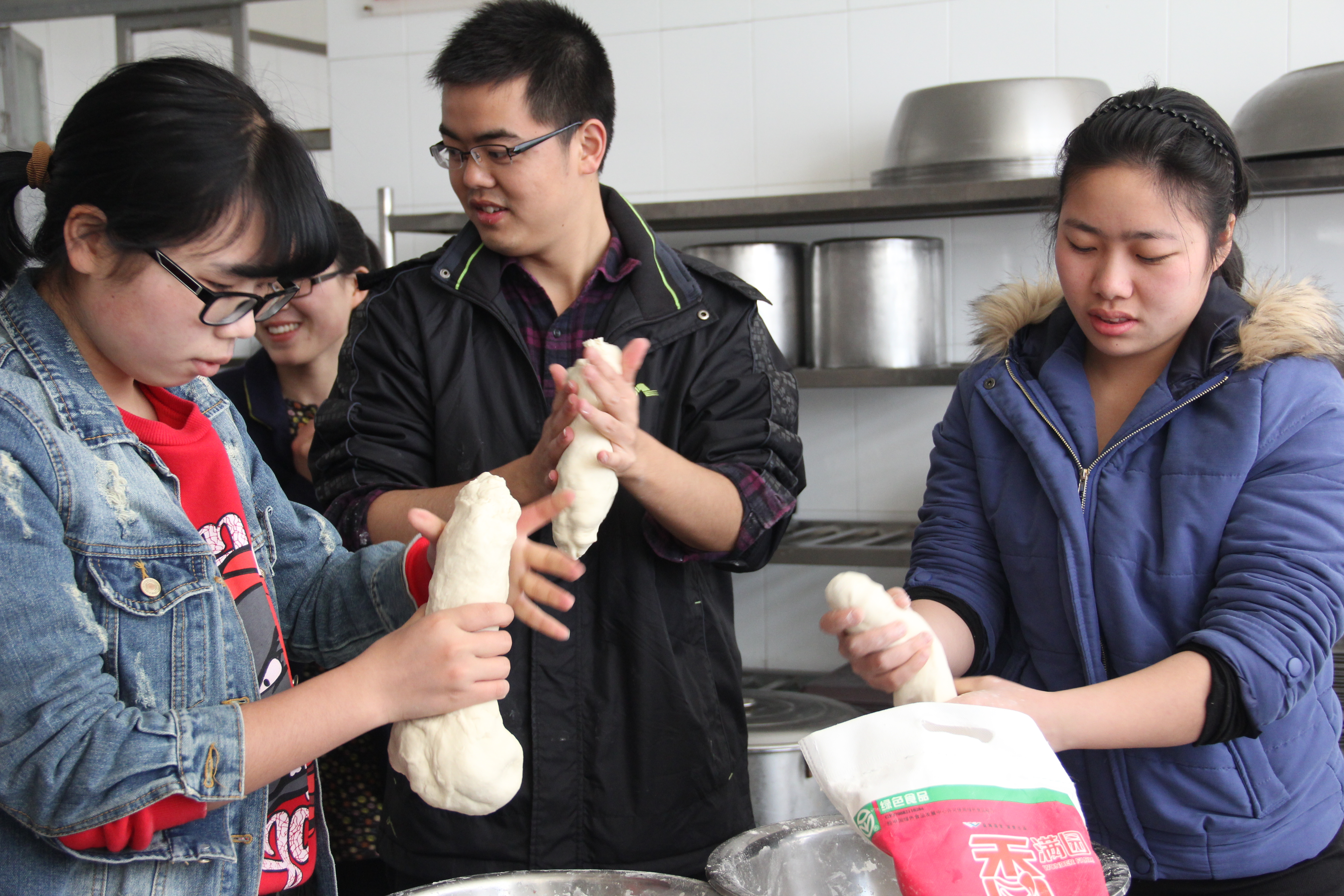为了给他们送去一份温暖,2014年3月22日上午,我班同学在溯初学区的C1食堂开展了本月的团日活动——“小小饺子会,浓浓公寓情”。自始至终,我们身边都有一个温暖的身影,那就是我们的班主任杨刚老师。