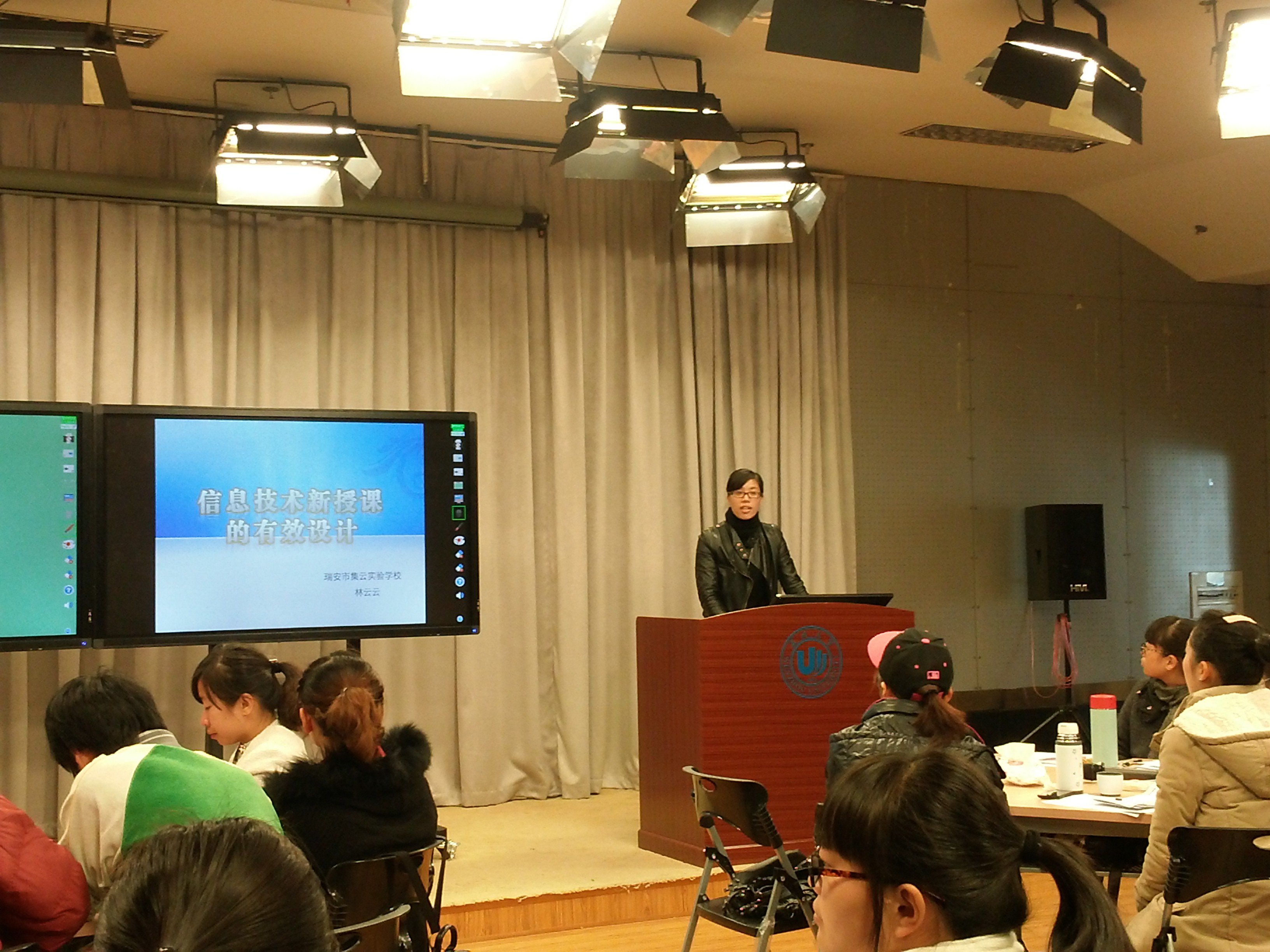 2013年12月13日,12教育技术全体同学在南校灵运厅参加由王佑镁老师与李伟老师主持的名师交流会。此次请到的名师分别是温州中学信息技术权威教师——谢作如,瑞安集云实验财神捕鱼