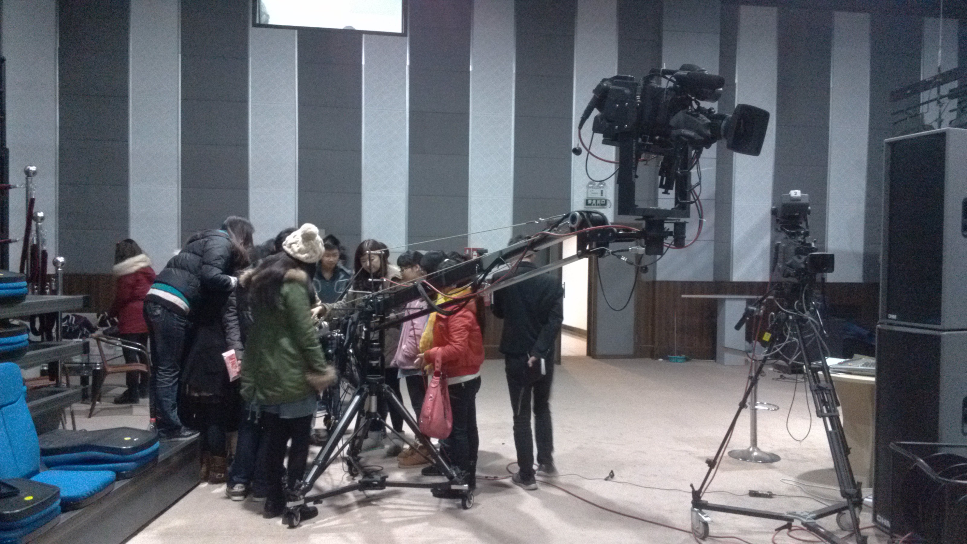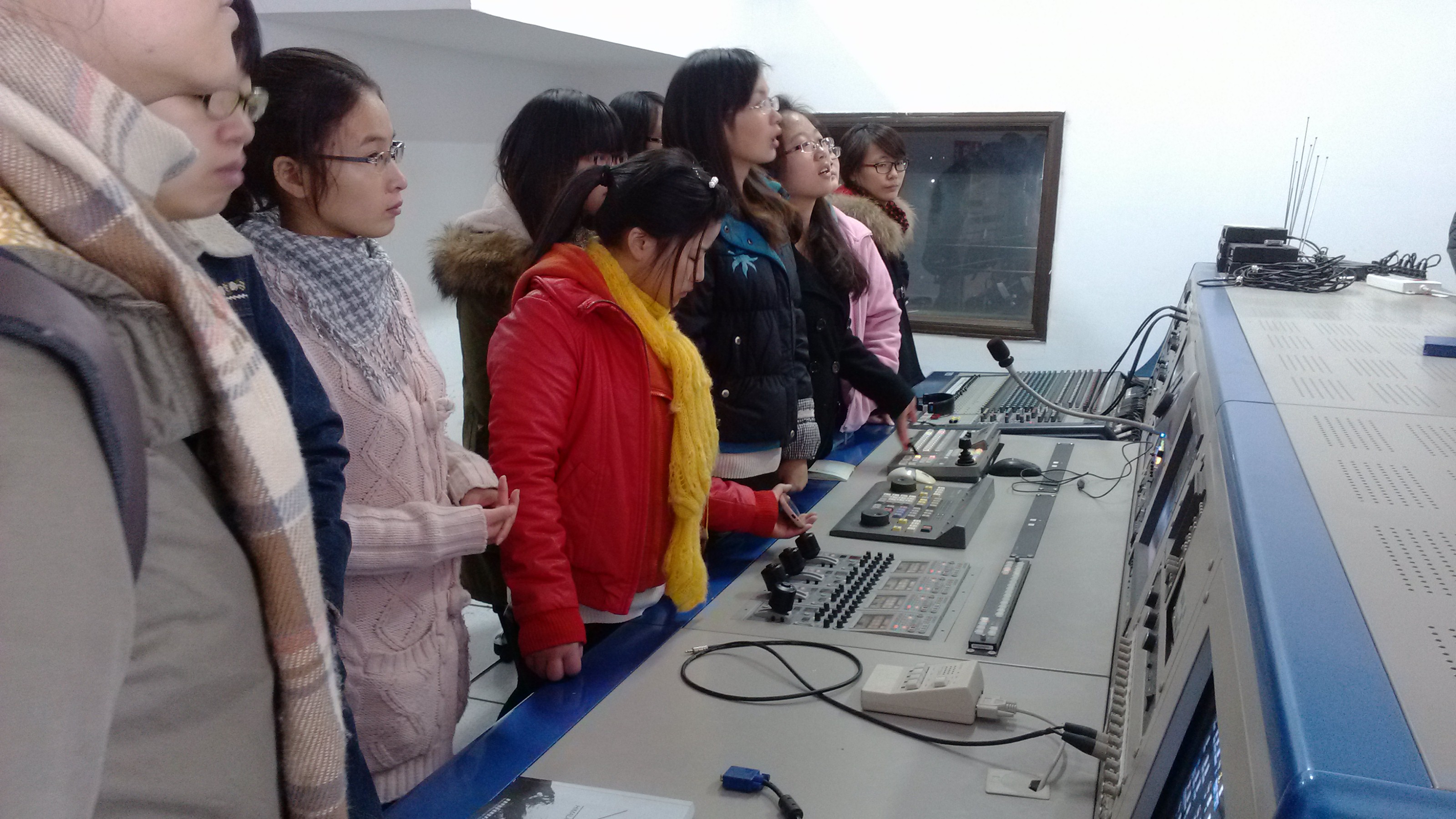 2012年12月10日10教技的全班同学到南校行政楼十楼的演播室,进行了一天的演播室认知实践活动。在实践过程中,不仅赵颖老师指导了我们,现代教育技术中心的王立老师也给我们讲解了好多相关的知识与技能。