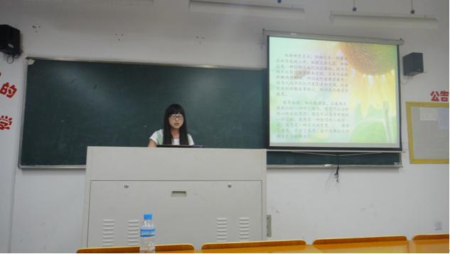 此次比赛的演讲主题形式多样,有文学哲理的,有心理学气息的,有生物反应的,有旅游介绍的,有关爱主题的,有励志主题的等等。演讲人都各自有各自的特点,有的激情四射,有的羞涩文气,有的镇静自若,有的紧张难定,但大家都将自己的特色充分展现出来了。第一个出场的丹尼同学,讲述了猫的故事,从黑猫警长讲到加菲猫,再到现实的猫,最后点出关爱猫类的主题。整个氛围很是具有童年回忆的气息。其中,明琴所讲的乐观者与悲观者的成功密码,引人深思。最后,两位新疆同学也带来了自己精彩的演讲,大家都献出了阵阵掌声。