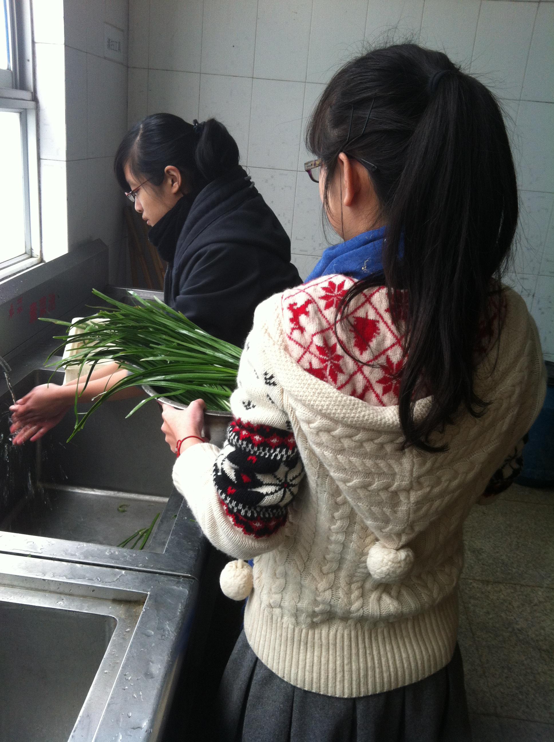 活动在下午1点准时开始。而在这之前,班委们早已抵达食堂,并在工作人员的热心帮助下,洗菜、切菜,最终将各种口味的馅儿整齐有序地摆放在了餐桌上。同学们围绕在餐桌周围,选择好自己喜欢的饺子馅儿,开始动手包饺子,不会的同学边看边学,会的同学耐心示范,大家都沉浸在欢声笑语中。在包饺子的过程中,团支书还安排了有关厨房小知识的竞答,同学们在体验包饺子的乐趣的同时,还从中学习到了许多的生活小窍门。