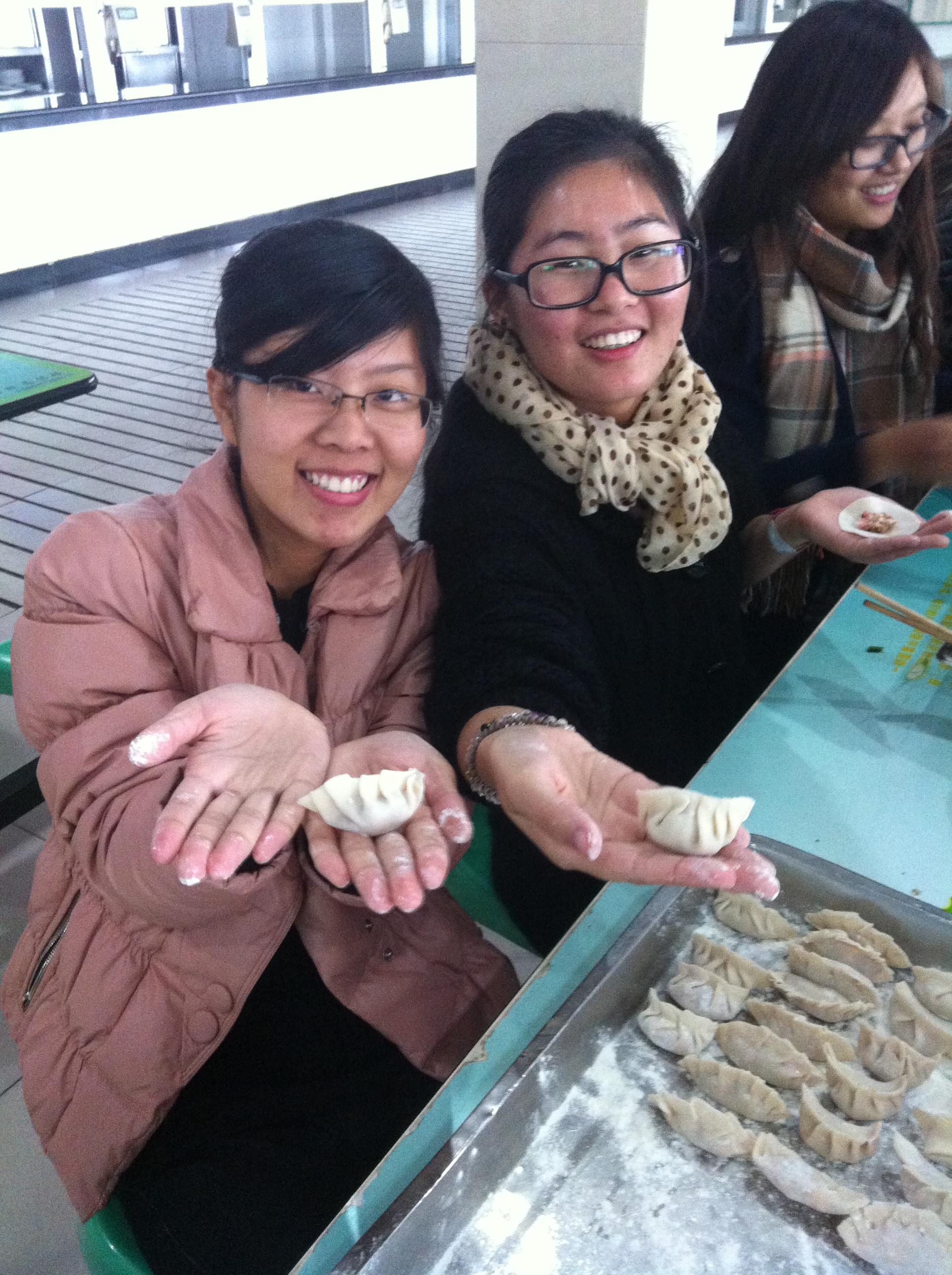 2013年12月11日下午,11学前本班的同学们在溯初学区的1号食堂开展了本月的团日活动。这次团日活动的主题是“关爱”,同学们以包饺子的形式展开。
