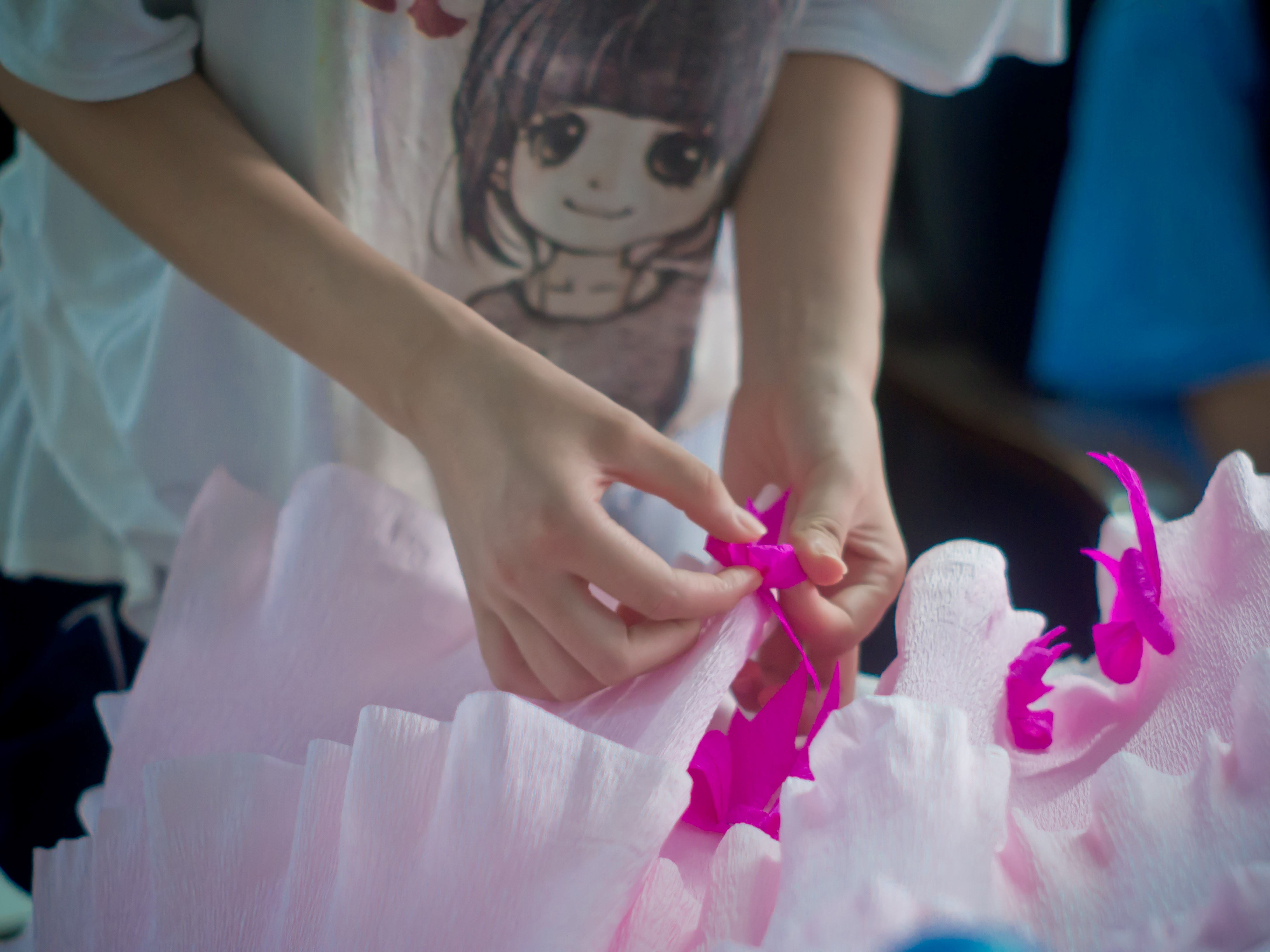 为了最后精彩的综合汇演展示,队员们从一周前已着手准备,包括各班节目的确立,特色的体现,时间的安排,服装道具的准备,舞台搭建的联系等。因为舞蹈节目服装不够,营员们大多同爷爷奶奶辈住在一起,枫岭又地处偏僻,队员们除了协调营员之间的营服,手工组的老师们还自己动手,为女生们制作漂亮的彩色皱纸裙子。学生们趴在办公室窗口,直呼这裙子比买的还好看,大家满心期待。