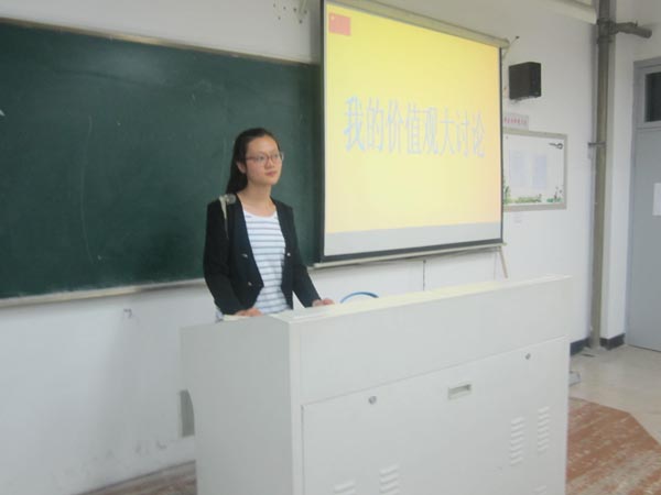 随后同学们趁热打铁进行了团日活动的第二个环节——我的价值观大讨论。有人说,大学生的价值观更多的是责任;有人说是奉献;有人说是自省;也有人说是自我完善和发展。尽管社会上仍有许多的不公平现象、人情冷漠的行为,但社会毕竟是进步和发展,引领大学生价值观导向的主流仍是光明的。每个人的价值观取向不尽相同,却又有着共通之处,即肩负民族复兴与发展的历史使命和神圣责任。