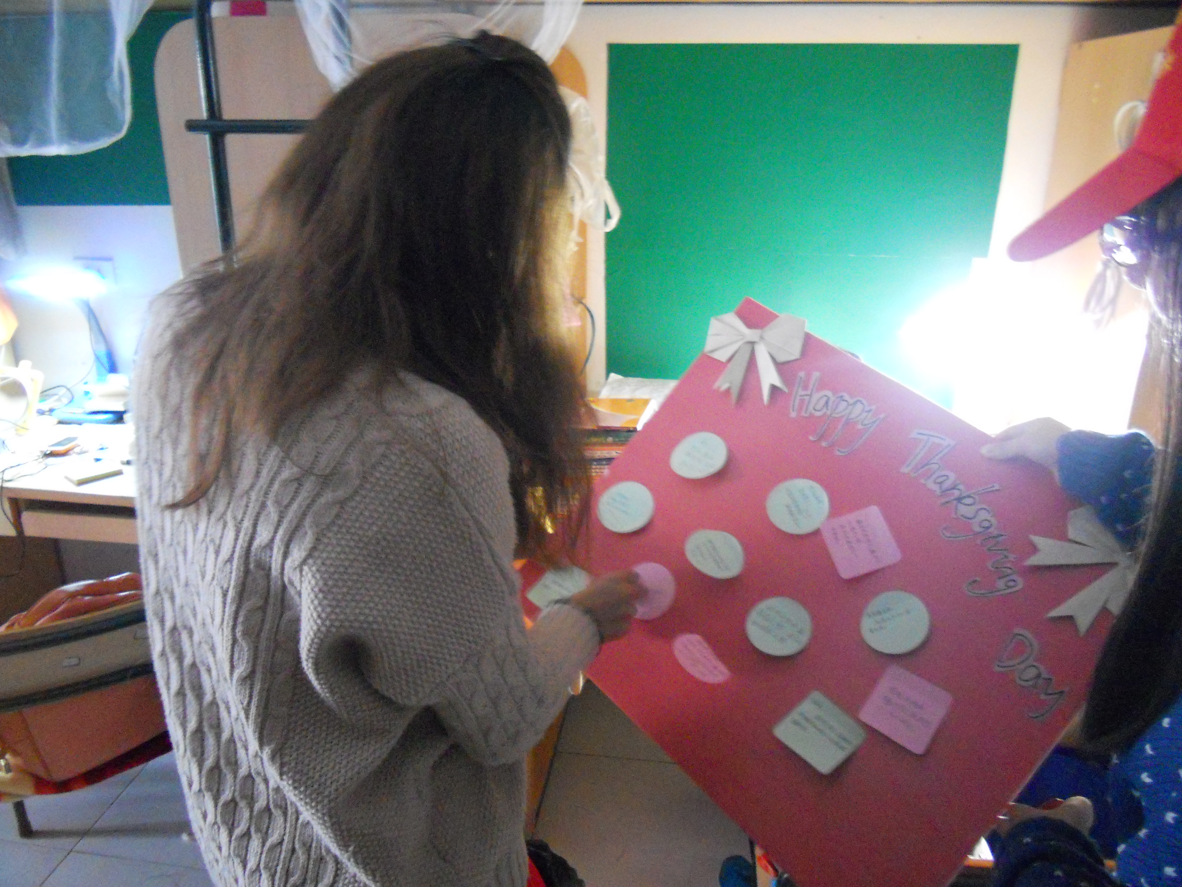 学生居住的寝室我们都去了。因为是星期六,很多人都安排了自己的活动,部分学生不在寝室或是在休息,这都增加了我们的收集难度。志愿者们怀着一颗感恩的心,礼貌地敲开每一扇门,而大部分同学们还是很配合的,纷纷留下了自己对辅导员老师的感谢与祝福。经过志愿者们的努力和同学们的支持,我们很快就收集到了很多的祝福语,有对老师表达感谢的——谢谢老师们对我们生活上的关心;有对老师的关心的——天气转凉了,老师们要注意保暖哦;也有对老师的祝福的——祝愿老师天天开心,越来越漂亮······