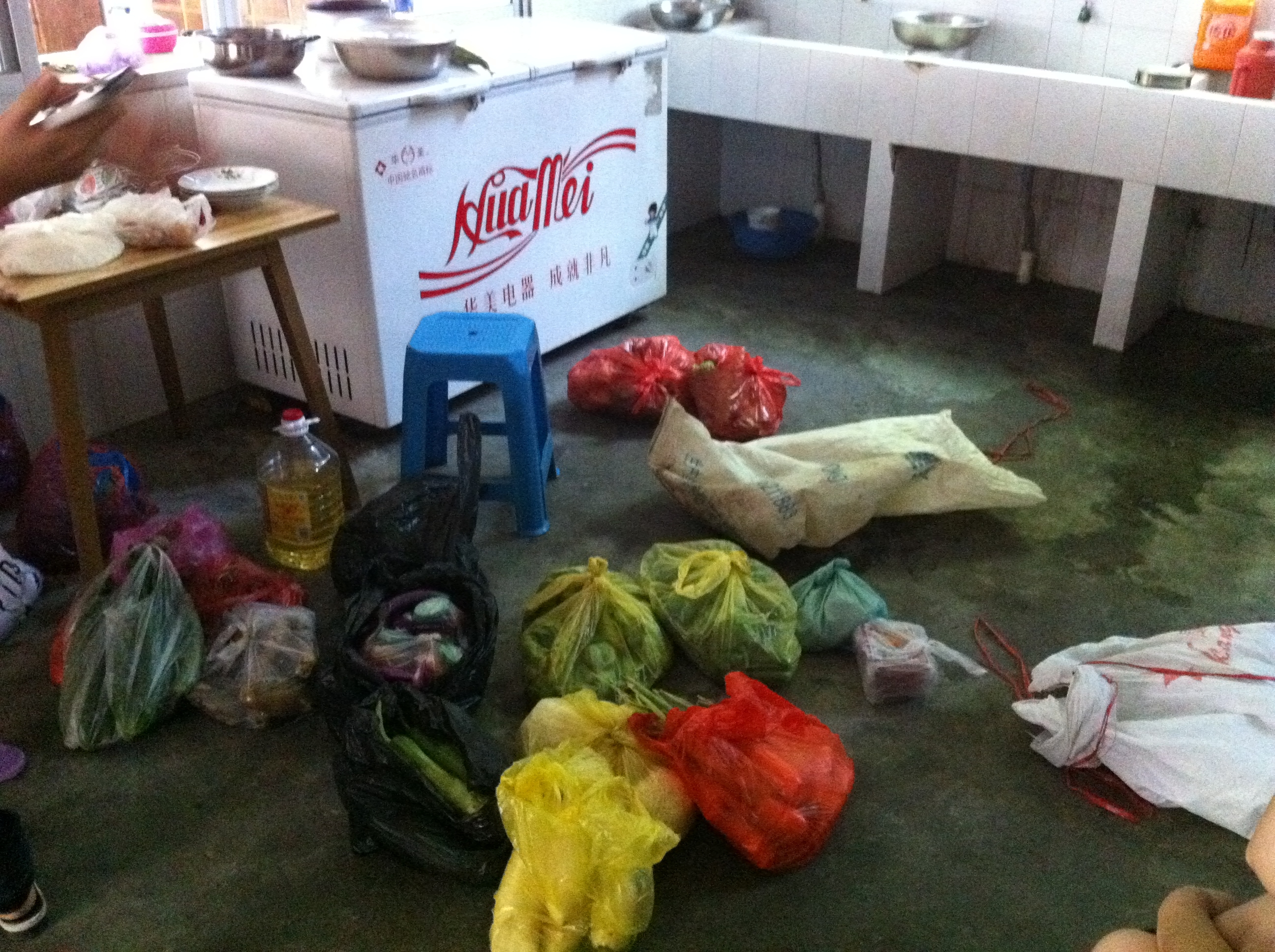 安民中心小学地处偏远山区,到处是山,村落与村落间的间隔相差十万八千里,交通十分不便。而且在这里村民们几乎是过着原始的自给自足的生活,甚少有多余的蔬菜、肉等粮食必需品,这对于来这里的短期山外人员譬如实践队极其不便。队员们每天只能吃些蔬菜,很少有机会吃到肉,就算有也只有当财神捕鱼