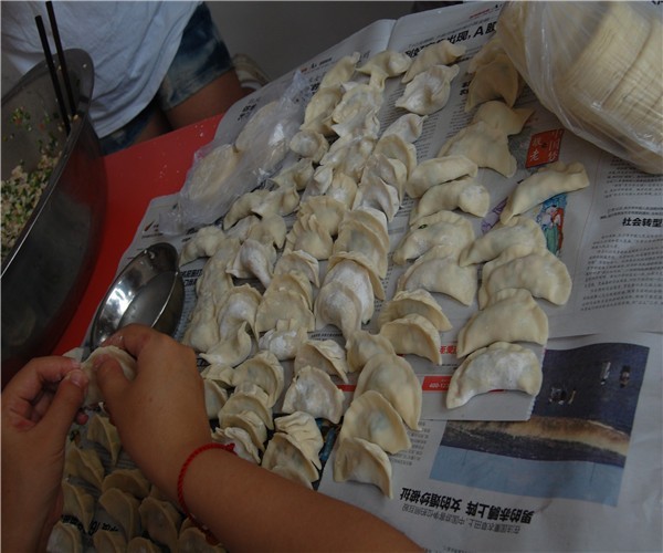 约用了两个小时,队员们包出500个饺子。在食堂大爷的指导下,男生们把煮熟了的饺子装进大食桶抬上楼,女生们则拿着大勺给孩子们添满饺子。当孩子们大快朵颐时,队员们皆站在一旁,没有动一个饺子。