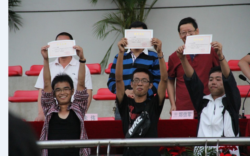 第四届田径运动会在北校操场隆重举行。10教技由华坤,毛云瑜,李阳,葛逸泽,厉鸿峰,许晶晶等6名运动员组成的班级运动团体在比赛中积极拼搏,班级成员积极配合以较大的优势拿到了全院班级团体总分第一的佳绩。