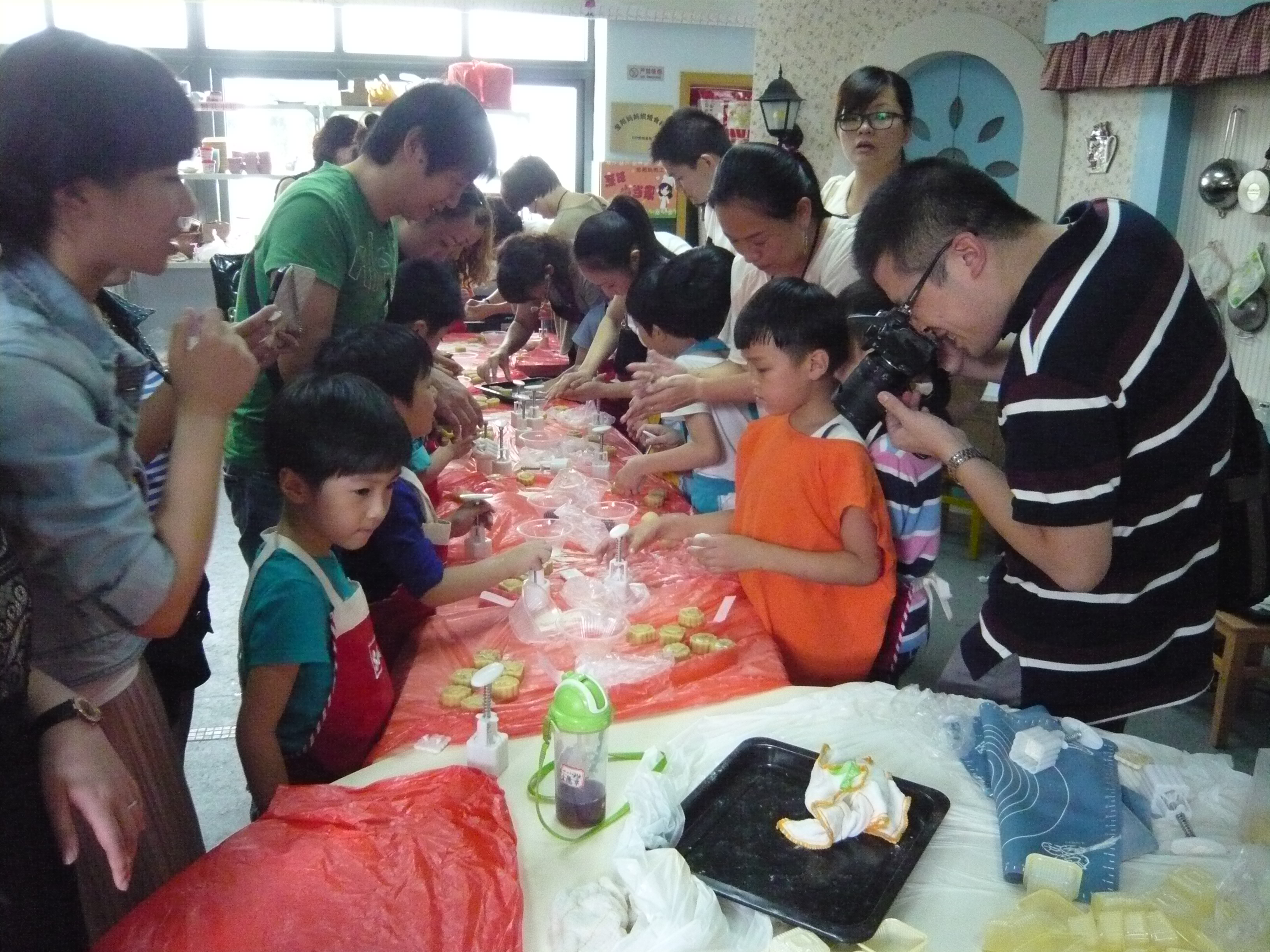 2012年9月28日下午两点,11小教数学班志愿者参加了温州青少年活动中心举办的喜迎中秋的亲子活动。最受小朋友们喜爱的就是做月饼咯!在老师和家长的指导下,小朋友们做出了一个个特别又独一无二的月饼,大家可开心了。
