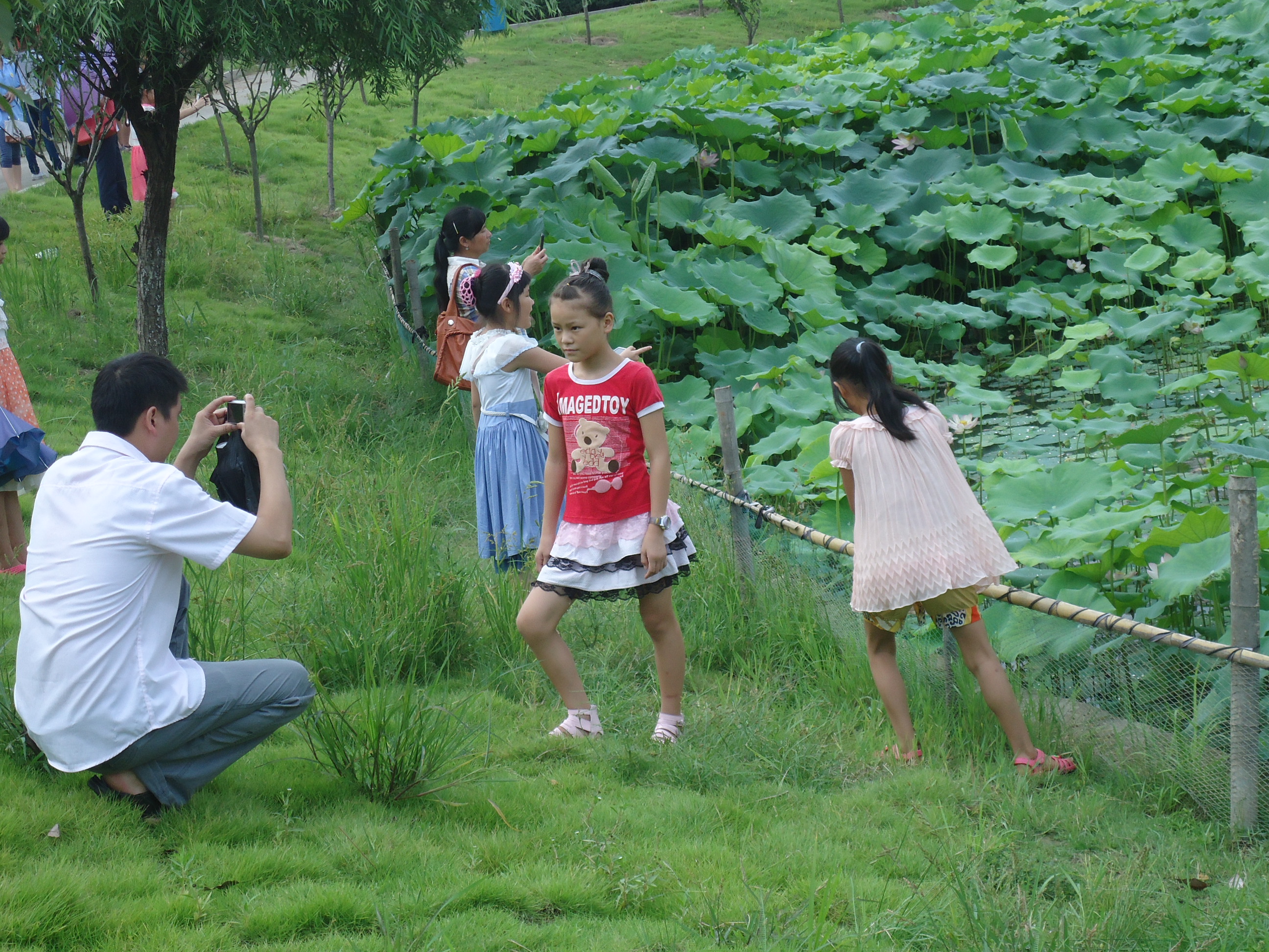 校训“求学问是,敢为人先”石碑下进行拍照留念。似乎为了欢迎孩子们的到来,天鹅湖里的两只黑天鹅,异常配合地在湖中伸展优美的身姿,让家长们和小朋友可以近距离的观看、拍照。很多孩子都是第一次看到天鹅,为此兴奋不已,还模仿黑天鹅的叫声,引来一阵欢笑。在后面的行程中,队员们也没有闲着,一方面为家长和小朋友进行详细而生动的介绍,另一方面也时刻关注着小朋友的安全,其中有个小朋友,疑是中暑了,队长谢晓蒙赶忙拿出事先准备好的防暑药,在队员们和家长的照顾之下,小朋友的身体逐渐恢复了。