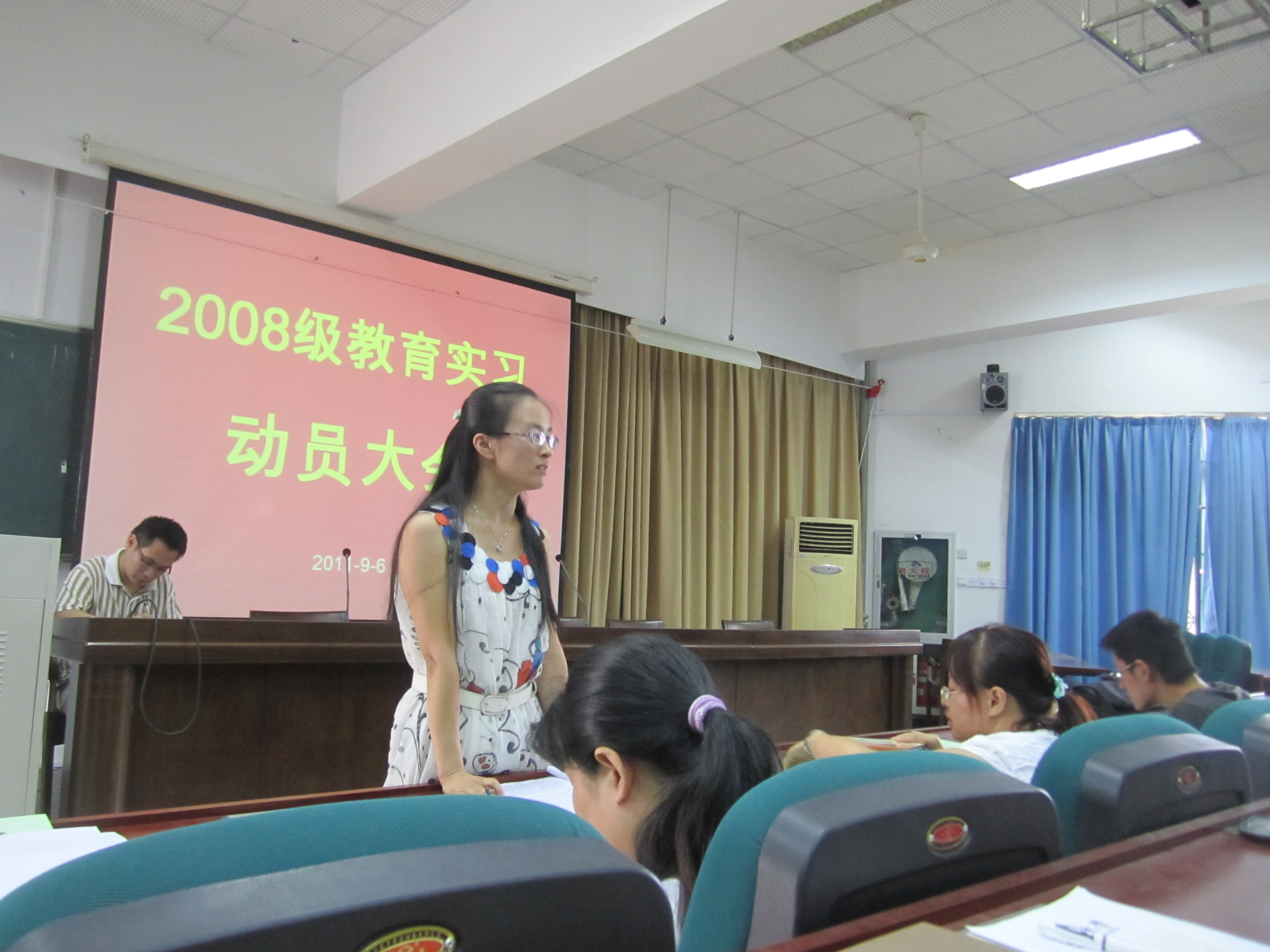 接下来,教技系书记李丽老师从教技系的角度对08教技同学提出了希望和要求;李伟老师从具体实习环节作了周到和细致的布置;胡孙贵老师在解释完了实习材料的使用后,对实习安全、实习老师仪表和财神捕鱼