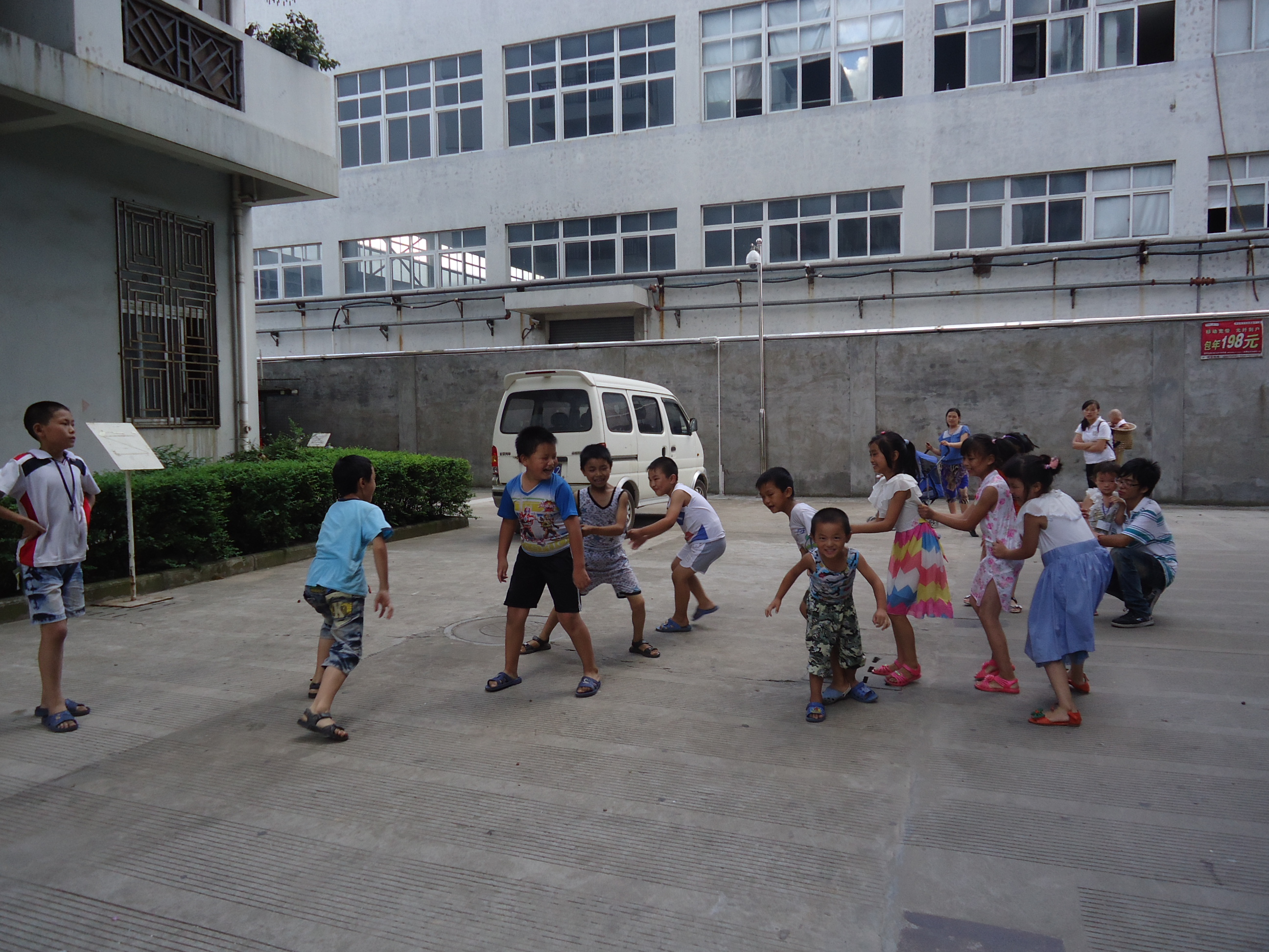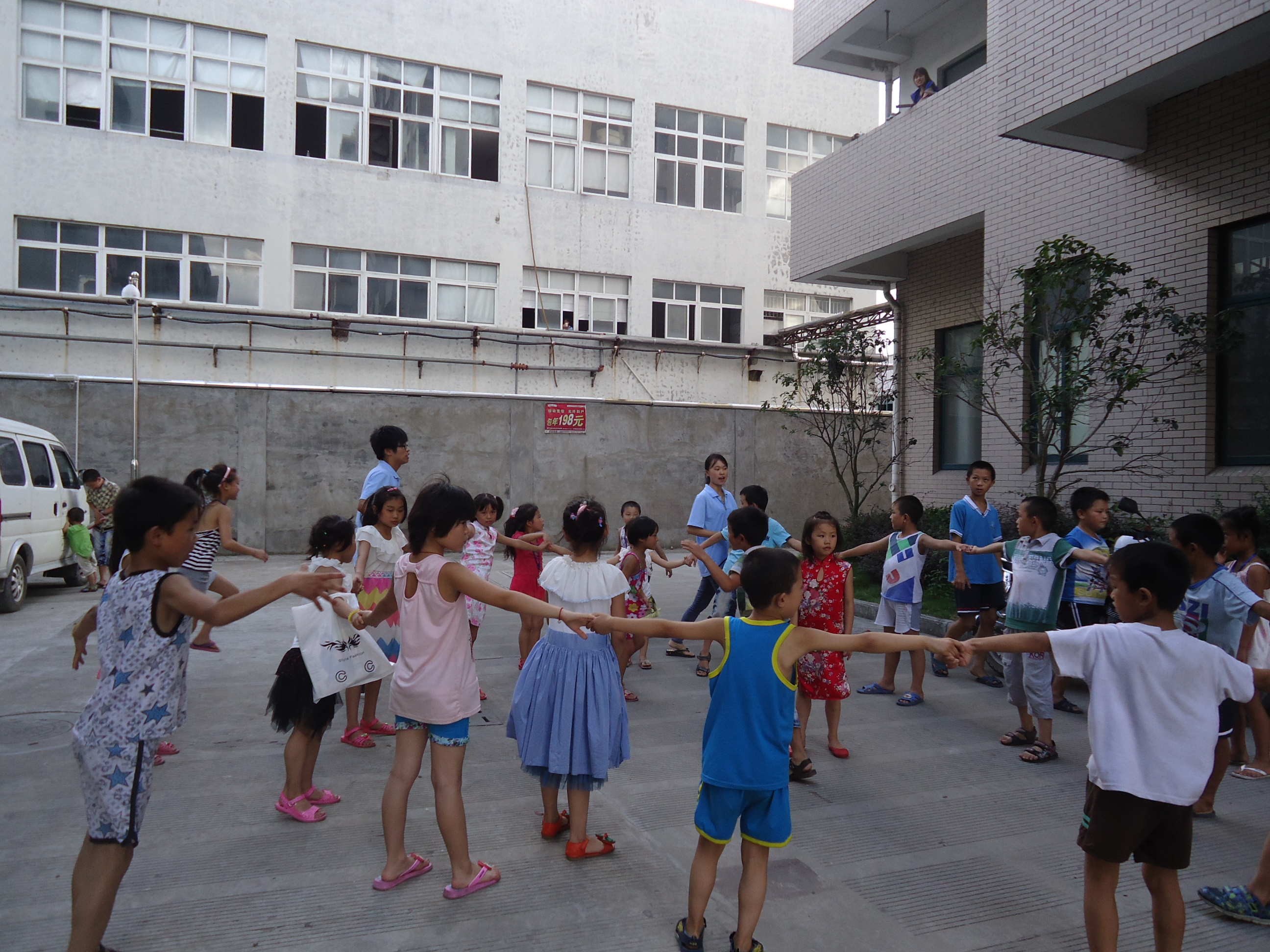 见面会之后,队员们与林老师将学生们领到室外空旷处,开展了本次支教的第一堂素质拓展课。根据学生年龄的差异,队员们将学生分为小学组与幼儿组。一部分队员带领幼儿组学生开展了“老鹰捉小鸡”活动,而小学组学生则在另外一部分队员的带领下开展了“老鼠打洞”的游戏,大家玩得不亦乐乎,同时也进一步拉近了队员们与学生们之间的距离。