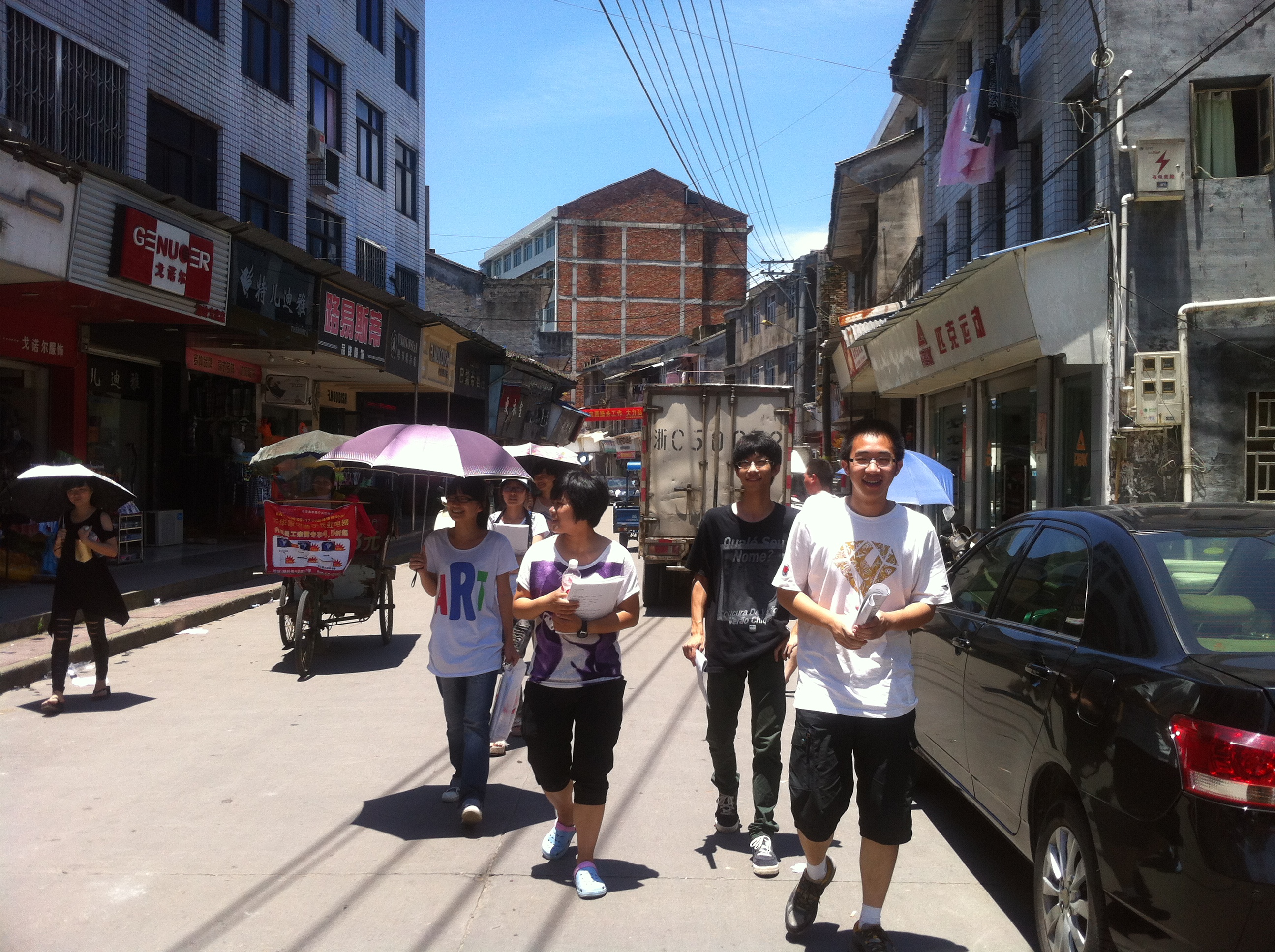 第一天来的时候是因为坐车让我们很疲惫,接下来是不断地采点,而今天,将所有的事情都集合在一起了。那么热的天气,可是还得将几百份的问卷完成。这可真是一份很累的工程啊!!!挨家挨户的问卷调查真的不是一件简单的事情我们花了一整天的时间也没有完成全部的问卷,最后在夜幕降临之前,只好匆匆收队了,不过我们至少基本完成了。只是啊,真的好劳累的,从来没有在这么大热天做过这么多的事情,而且还是冒着大太阳。
