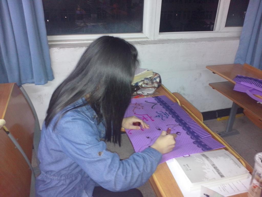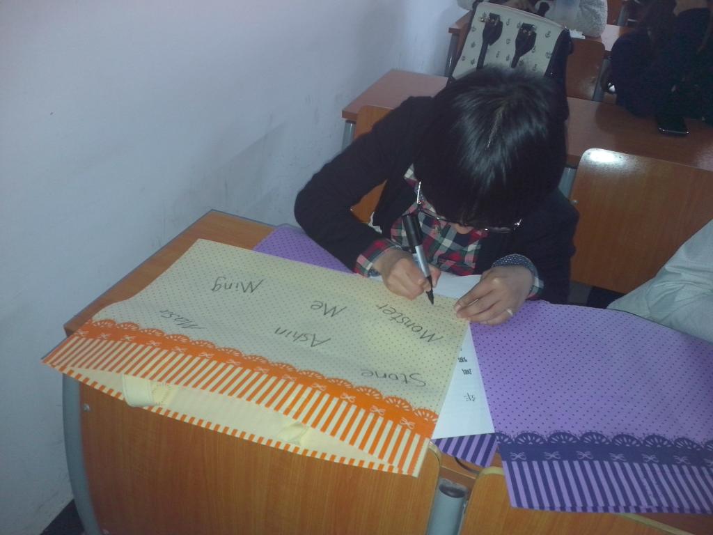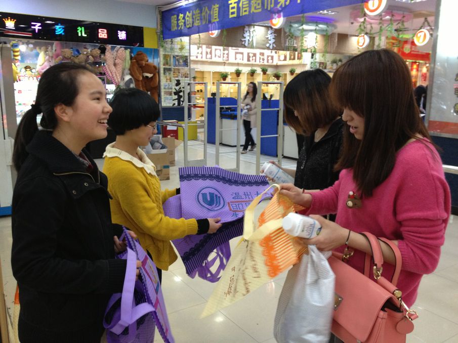 11小教中文班。现在,我们班在为宣传温大八十周年校庆举行一次班级团日活动……”说清楚了这环保袋的“出生背景”,自然而然的,过路的人都非常愿意接受来自11小教中文班的好意!