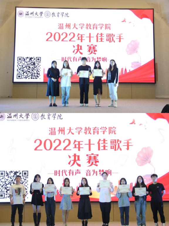 评委们细致的点评过后,主持人宣布了教院十佳歌手名单。温大财神捕鱼 陈恩清老师和杨婧老师为前三名获奖者颁奖,邵胜男老师和杜俊一老师则为四到十名获奖同学颁奖。
