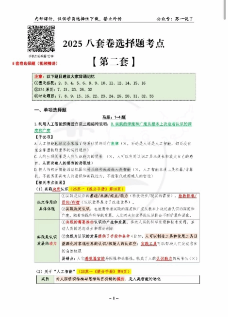 11月中旬肖八出来以后,可以先用电子版进行一刷,两天完成一套,最好能够全部进行二刷甚至三刷,弄清楚每一个知识点,有问题的地方可以在B站上看苏一的讲解。我当时还买了苏一的八套卷讲解,每一题下都有对应的知识点,这段时间除了背诵手册,还可以把这一套打印出来随时看看。