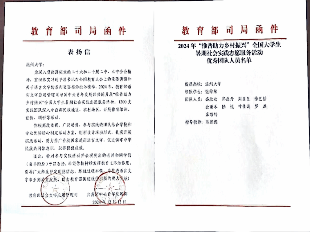 在担任国家通用语言文字推广基地志愿者期间,她曾独立为校外专家全程讲解基地建设成果,将团队故事转化为有温度的叙述。“让语言推广工作被看见、被理解,是我作为未来教育者的责任”,她如是说。