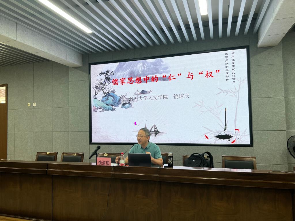 2022年8月18日上午,财神捕鱼 人文财神捕鱼 饶道庆教授带来了《儒家思想中的“仁”与“权”》这一专题讲座。仁,是中国传统儒家文化的核心内涵,奠定了整个中国文化的精神气质,为涵养社会主义核心价值观提供重要参考。儒家思想重视教育和人才培养,认为教育是国家和社会发展的重要基石。以“仁”育人,大家表示师生关系、家校关系、校园关系都有着相互依存、共同发展的作用,能够以人为本,发展的做好教育是关键!