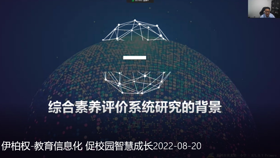 2022年8月19日下午,温州市黄龙第一小学的伊柏权校长通过自身的实践为大家带来《数智赋能管理》专题研讨。针对近年来,教育系统大力推进教育信息化,推进小语数字化建设,伊校长从:综合素养研究系统的背景、创新评价模式、多跨协同开放等多角度何“有方法、有组织、有制度”的推进校园智慧化建设与管理,给予了实际且便于操作的意见。让老师们非常受用!