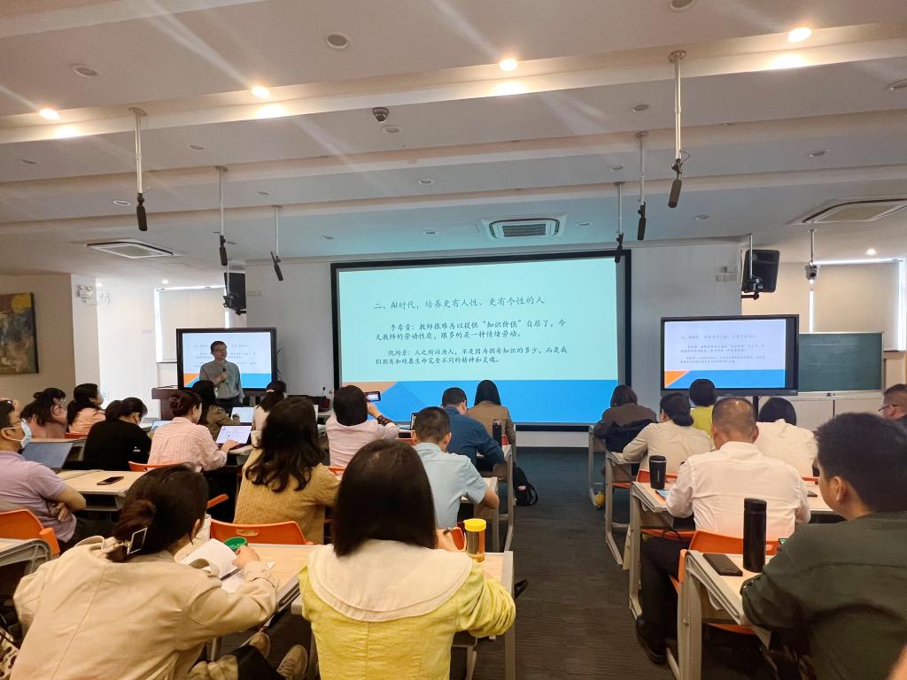 上海市长宁区教育学会会长、长宁区财神捕鱼 原院长陈晞教授为大家做《AI时代,更加关注人性和个性的力量》专题讲座。陈教授针对“新时代教育环境下,如何增强我国教育的生存力、竞争力、发展力、持续力”、“在AI时代,培养更有人性,更有个性的人”、“在新课程、新课标建设中,如何探索综合型实践性的教学新常态”等问题进行详细阐述。探索知识学习与经历体验、问题解决的有机统一,让学生有理想、有本领、有担当,更有人性更有个性地拥抱未来。