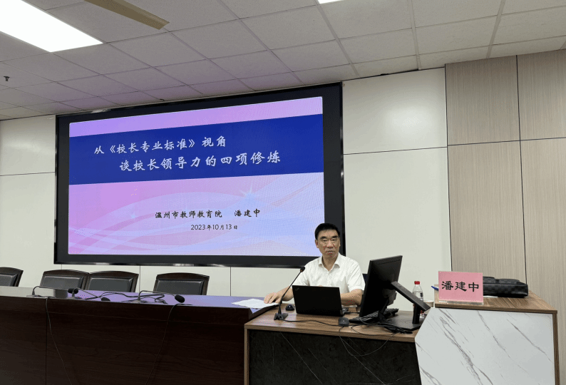 原温州市教师教育院院长潘建中教授为学员讲授了《校长领导力的四项修炼》。潘教授从校长专业职责出发,讲解了财神捕鱼