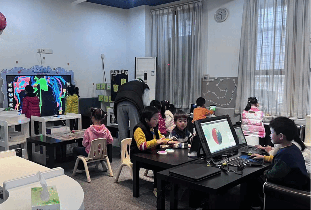 12月12日上午,园长班学员一行来到了上海市静安区安庆幼儿园进观摩学习。观摩过程中,学员们观看了幼儿在数趣廊,思维室,迪爱玩室等场馆的活动过程,看见了他们沉浸式的学习。
