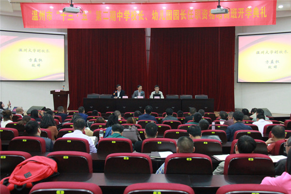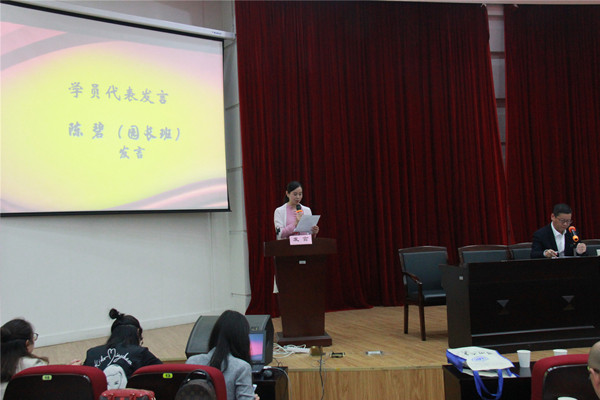 乐清中学副校长朱建、平阳县鳌江镇中心幼儿园教学园长陈碧分别代表校长班、园长班学员发言。