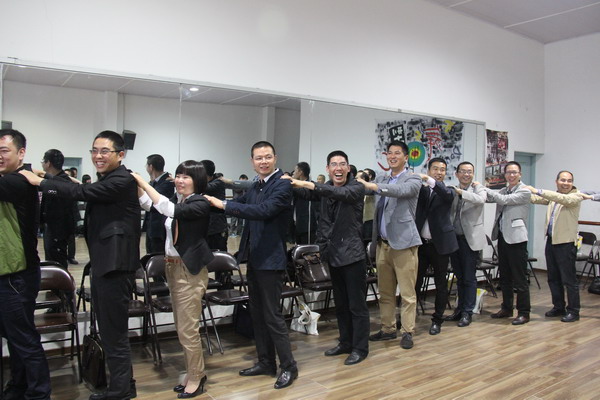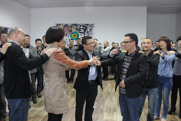 培训热身真正意义上是一次团体辅导活动,由多个环节构成。破冰第一招:“见面问好”游戏,要求校长们“自报家门”,彼此认识;接下来第二招:“大风吹”游戏,让平时不苟言笑的校长们变得活泼,彼此之间拉近了距离,课堂气氛开始轻松有趣;第三招: “松鼠和大树”和“小鸡成长历险记”,学员们开始对活动产生了浓厚的兴致,连平时很严肃的校长都积极参与其中。第四招:“心有千千结”和“共画一幅图”,通过活动形式把校长们按照事先设计好的方向进行了分组,进而以组为单位开展活动,让校长们体会到了团体协作的归属和愉悦。