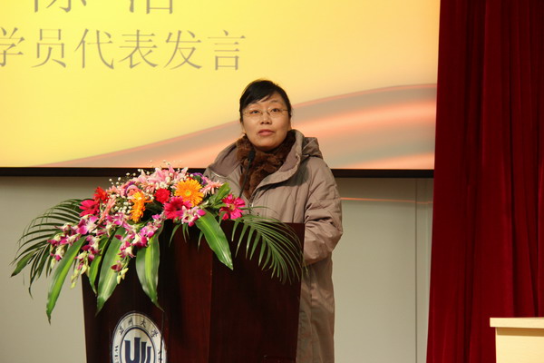 的陈洁校长分别代表高中班和初中班的学员发言。林英校长深情回顾培训历程,表示通过培训明确了校长的定位。林英校长以感谢、收获和期盼总结培训心得,并表示在培训过程中学员之间彼此信任,在学习的苦中享受到生活的甜。陈洁校长做了“逐浪弄潮,温州教育因我们而精彩”的主题发言,仰望星空,满怀激情,文采飞扬。陈洁校长认为身兼校长一职,任重道远,既要有推动温州教育事业的责任和意识,又要有引领温州教育的视野和信心。