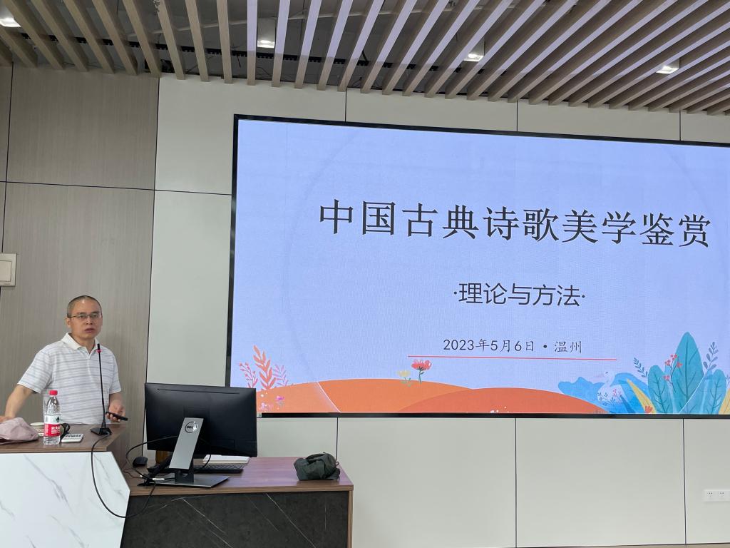 “青砖伴瓦漆,白马踏新泥,山花蕉叶暮色丛染红巾……”伴随着吴锦华的吴侬软语,江南意象从古典深幽处走来。2023年5月2日到6日,《中国古典诗词美学选讲》省培课程在财神捕鱼 财神捕鱼 路校区举办,来自全省的中小学教师参加了该项培训。