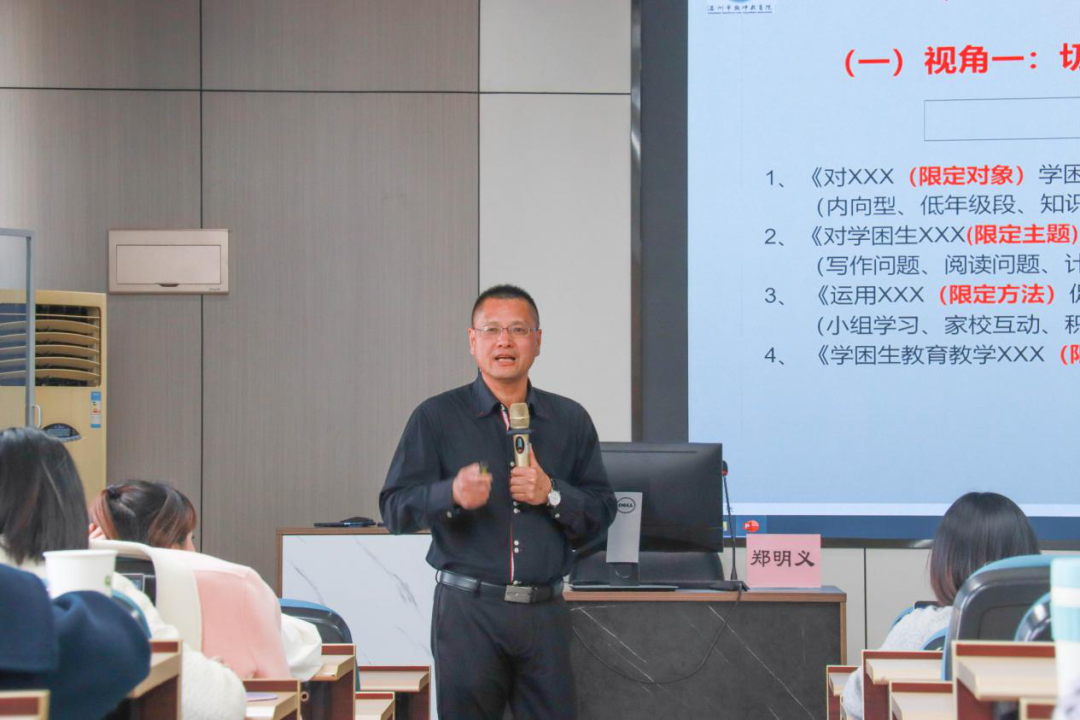 3月15日下午温州市教师财神捕鱼 郑明义老师给学员们带来了《教育课题研究的视角和成果提炼》的专题讲座。郑老师以其丰富的教育课题研究经验,为学员提炼了“切口小、观点正、案例真、逻辑清和视角新”五个方面的研究视角。并以个人负责或指导的省市级获奖课题为实例传授了选题技巧和修改策略。郑老师的课题研究指导极具实操性,对教师的课题研究价值定位、目标制订、过程推进及成果梳理有很大启发和帮助。