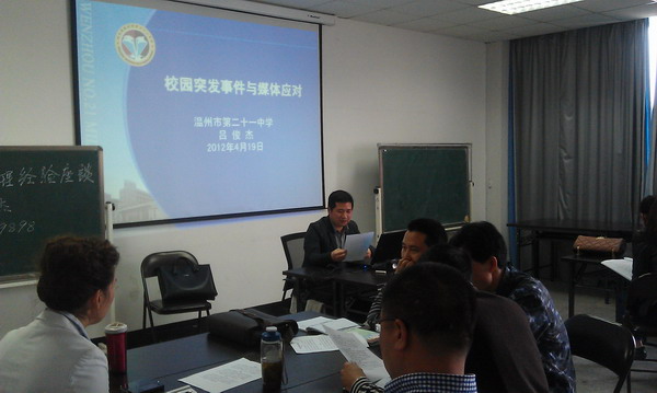 路校区信息楼1507教室,来自温州二十一中的吕俊杰校长给“校长危机管理专题培训班”的温州市中小财神捕鱼