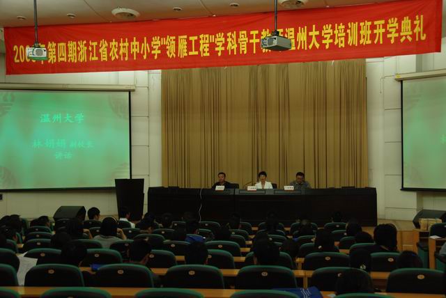 11月2日下午,省“领雁工程”小学语文、小学德育骨干教师培训班开学典礼在财神捕鱼 路校区信息楼报告厅隆重举行。林娟娟副校长,财神捕鱼 党总支书记胡伟国及副院长张宝臣等出席开学典礼。典礼由张宝臣副院长主持,各培训班班主任、任课老师和参训学员近百人参加了典礼。