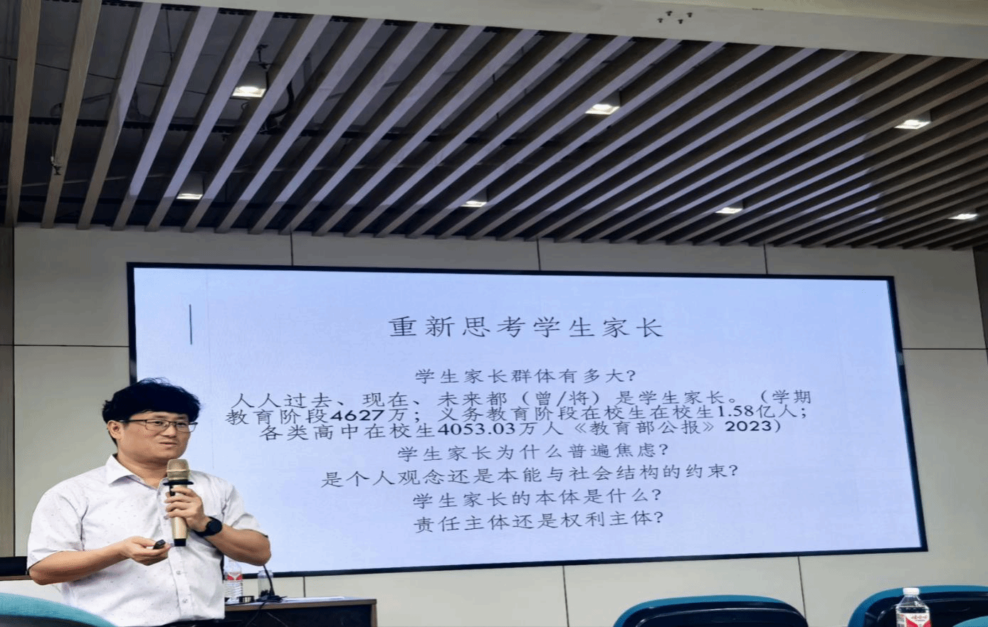 第二天,赵同友博士带来了《如何通过家校合作促进学生健康发展》的讲座,他通过讲诉自己与女儿老师的沟通、交流的经历,以及自己工作中所见所闻,指出家校沟通是小学生教育管理工作的重要内容,新媒体时代家校沟通变得更加迅捷,但也很容易碰触家长与教师双方的权力边界,产生家校冲突。针对新媒体时代小学生家校沟通的权力边界问题,赵博士与参训老师分析讨论了家校沟通常见冲突的性质和应对策略。