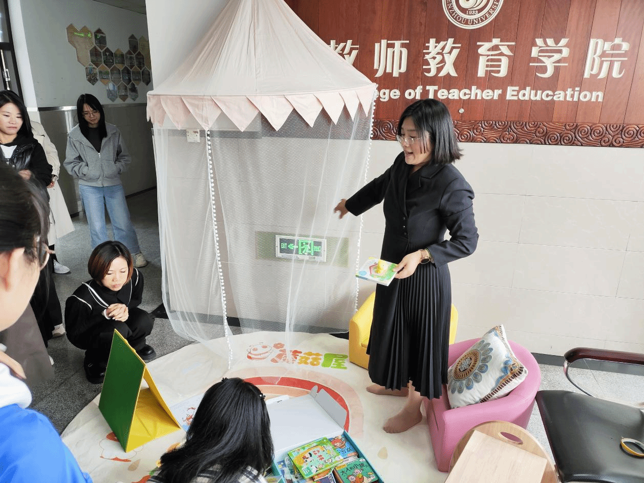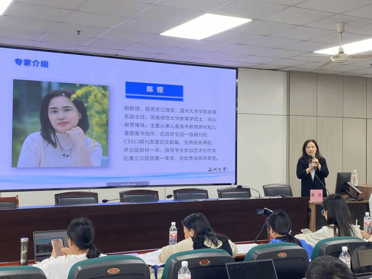 陈铿副教授带来《图画书的秘密——图画书的解读与认识》讲座,陈老师带着她们了解图画书中视觉艺术传达的方式,并根据图中的客观依据由图画延伸出教育的意义。![]()
