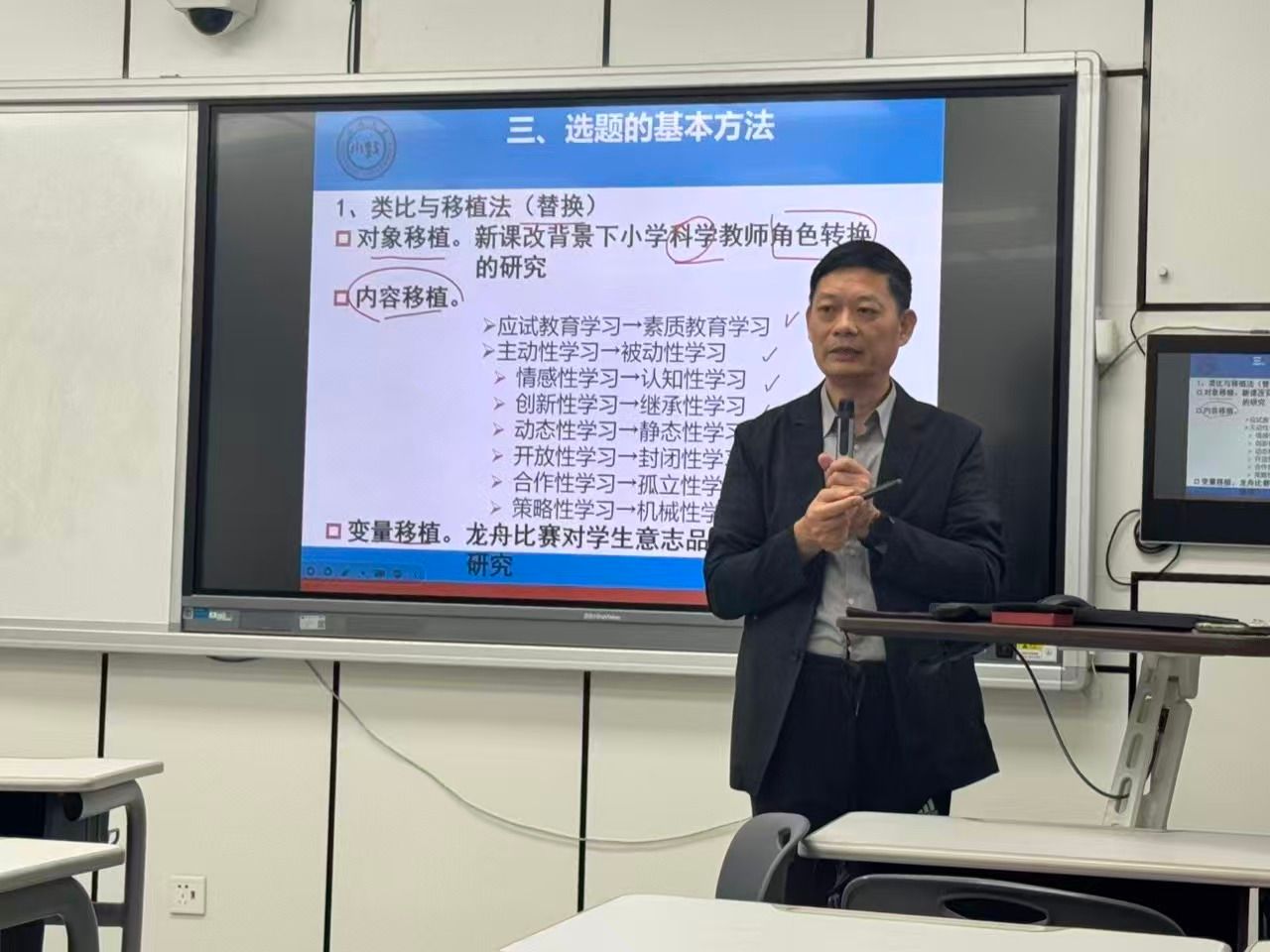 为切实解决小学科学教师在教科研实践中的困惑,蔡志凌教授以“文献检索”与“论文选题与表达”为主题,通过实际案例拆解文献检索技巧,从教学痛点中挖掘选题方向,聚焦“小而实”的研究问题。课程围绕“小学科学教科研论文写作”与“小学科学课题研究”展开,详细讲解课题申报流程、研究设计方法及数据分析要点,让教师掌握行动研究、文献研究等常用科研方法的实际应用。蔡教授通过“小学生科技项目方案写作技巧及成果整理与申报”专题研讨和“科技活动方案的写作及成果整理与申报”专题讲座,结合真实案例剖析方案撰写与成果申报的关键环节,帮助教师将科研成果转化为实际教学效益。