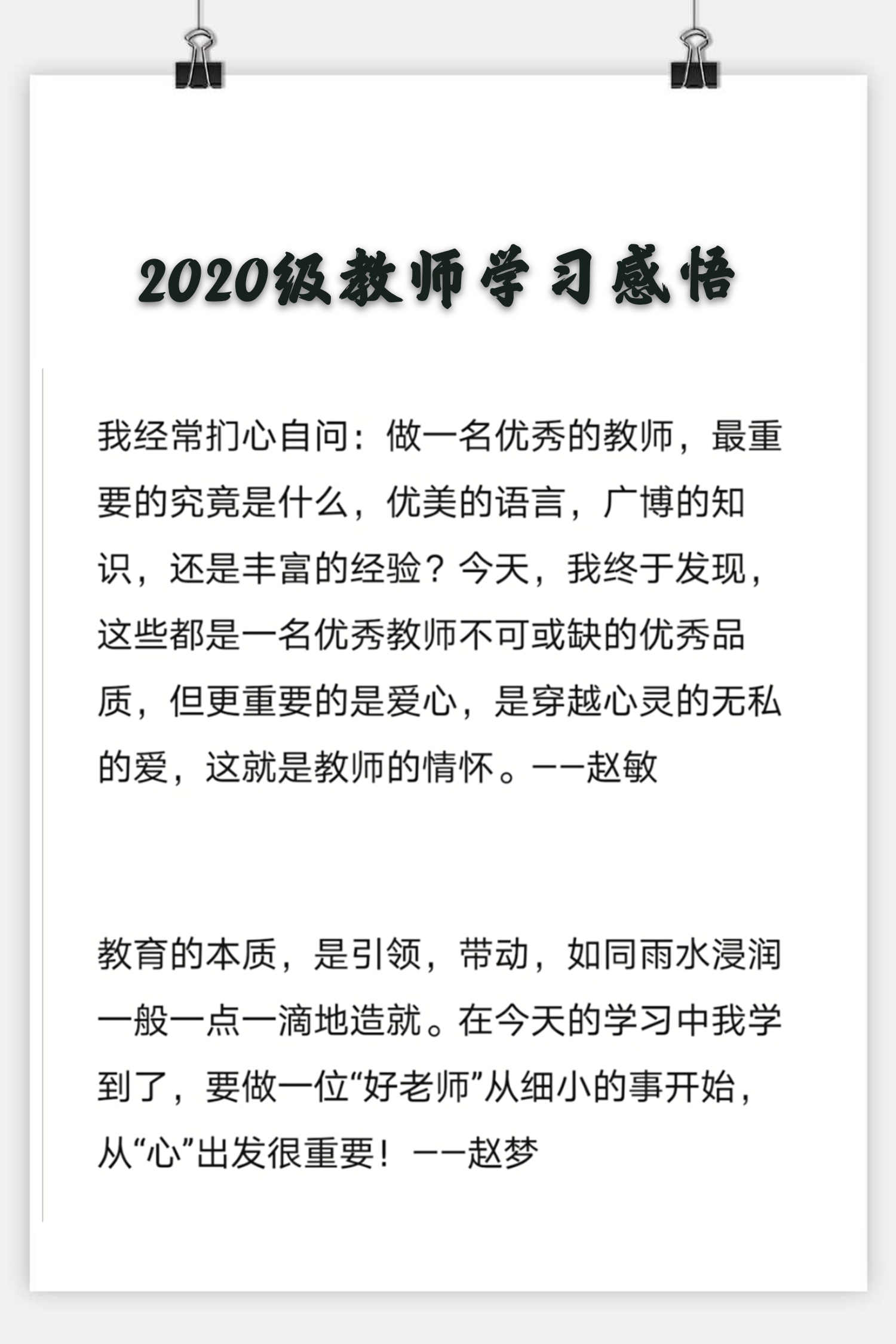 “我们都要珍惜这份光荣、爱惜这份职业,倾心投入教育事业,向着优秀的人民教师,进发!”这是来自天河中学的孔素艳老师作为2020级新教师代表在台上的庄重表态。她倡议所有新教师不断学习,不断精进,争做新时代下的优秀新青年教师。两位新教师的热情、活力,让在座的人都感受到了集聚区新教师的不断进取、锐意创新的精神面貌!