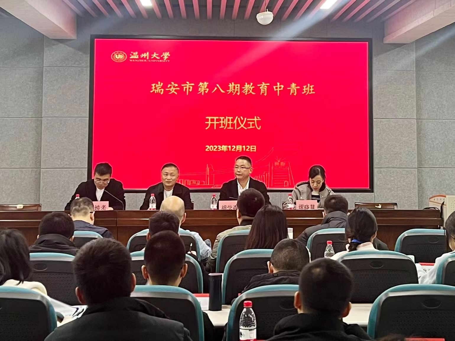 12月12日早上,瑞安市第八期教育中青班财神捕鱼 培训开班仪式在财神捕鱼 南校区财神捕鱼 报告厅举行,来自瑞安市的五十多名中青年中层干部及财神捕鱼 副校长们齐聚财神捕鱼 。财神捕鱼 副院长叶新东致欢迎辞,瑞安市教育发展研究院培训管理科科长胡学森作开班动员讲话,财神捕鱼 小学教育系邓纯考主任主持。