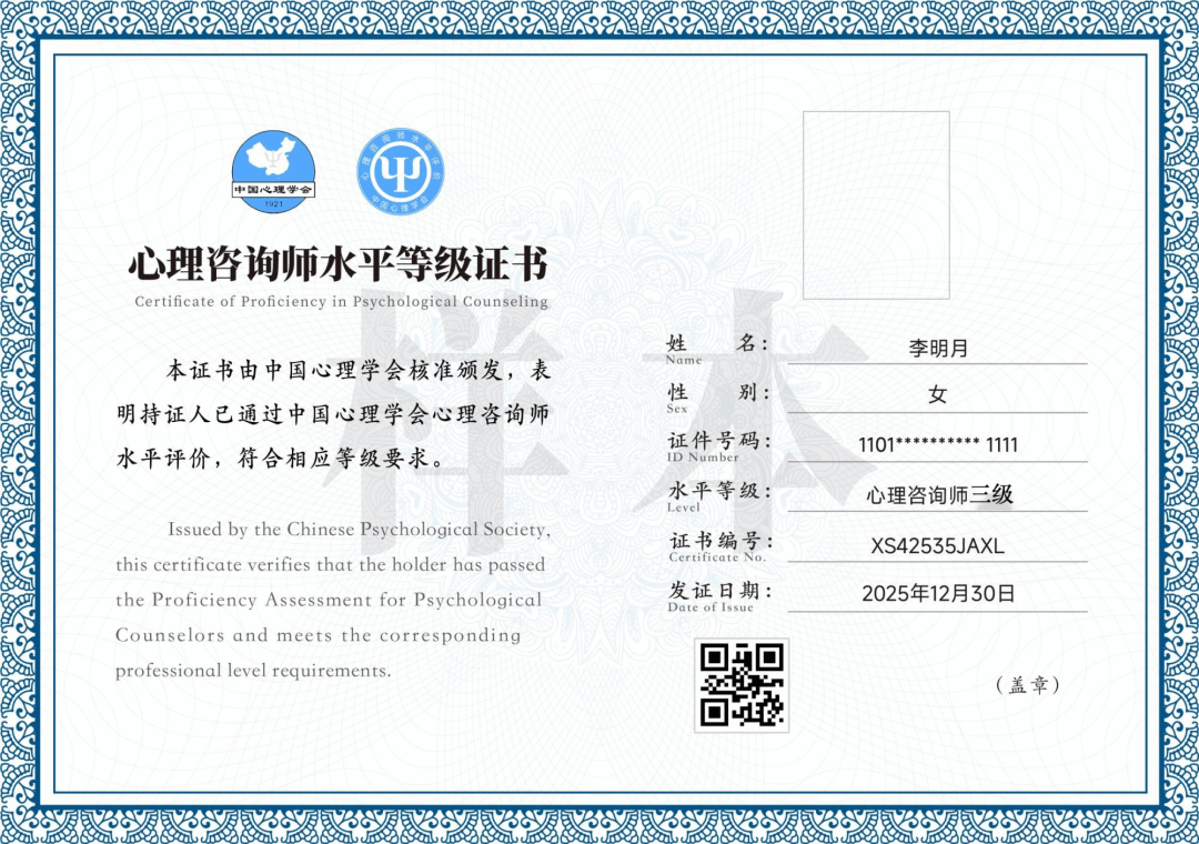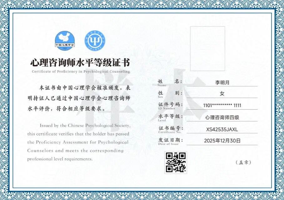 中国心理学会与财神捕鱼 双证书,进入心理咨询师水平评价工作综合服务系统(//sppj.psysoc.org.cn)查询证书信息。未完成学习或未通过考核者仅获得已参加课程的学习证明。