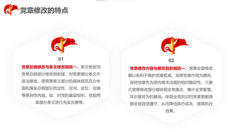 由余悦、王泠遐、倪恺琳同志组成的第二组成员也发表了自己的看法与见解。相较于第一组的提纲掣领,他们聚焦于“党的二十大党章修改的九个要点”进行了更为深入与透彻的讲解,抓住“任何一部党章都是历史的产物,都带有自己的时空烙印”“党章修改重在体现重大理论观点和重大战略思想”等关键点,紧跟时政、分享心得,总结性的陈述让与会党员们对党章有了更加深刻的理解与感触。