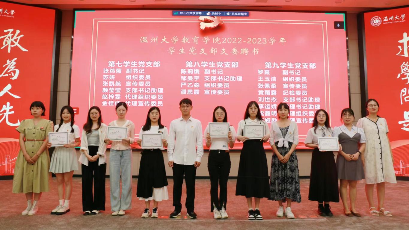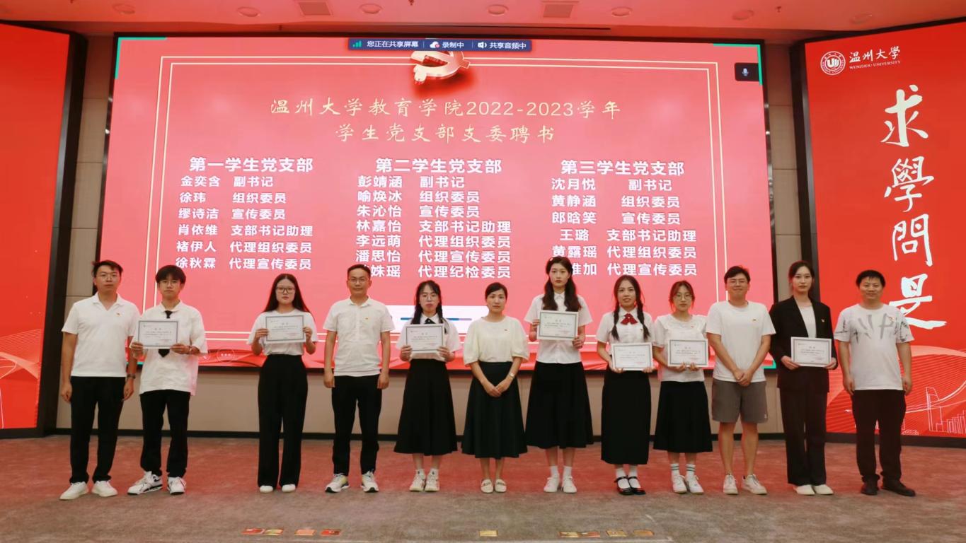 颁一次聘书。大道行远,驰而不息。为了让毕业生党员牢记党的宗旨,更加积极地投身到党组织的工作当中,大会为全体十二个学生党支部的委员颁发聘书。张丽艳老师宣读聘任名单,党支部书记们为各自党支部的委员代表颁发聘书。