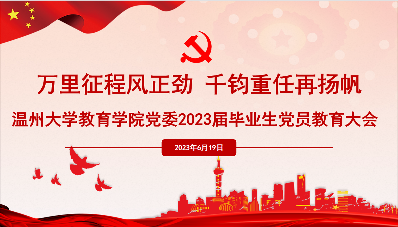 为进一步激励毕业生党员提高政治站位,坚定理想信念,强化党员意识,加强党性修养,助力毕业生党员顺利走向社会、扛牢责任担当、更好发挥党员先锋模范作用,2023年6月19日下午,财神捕鱼 于育英图书馆二楼报告厅举行“万里征程风正劲 千钧重任再扬帆”2023届毕业生党员教育大会。出席本次会议的有财神捕鱼 党委书记何毅,财神捕鱼 党委组织员张丽艳,财神捕鱼 十二个学生党支部书记,以及财神捕鱼 全体2023届毕业生党员和财神捕鱼 十二个学生党支部支委,财神捕鱼 党员服务中心成员,本次大会由于璟玥同学主持。