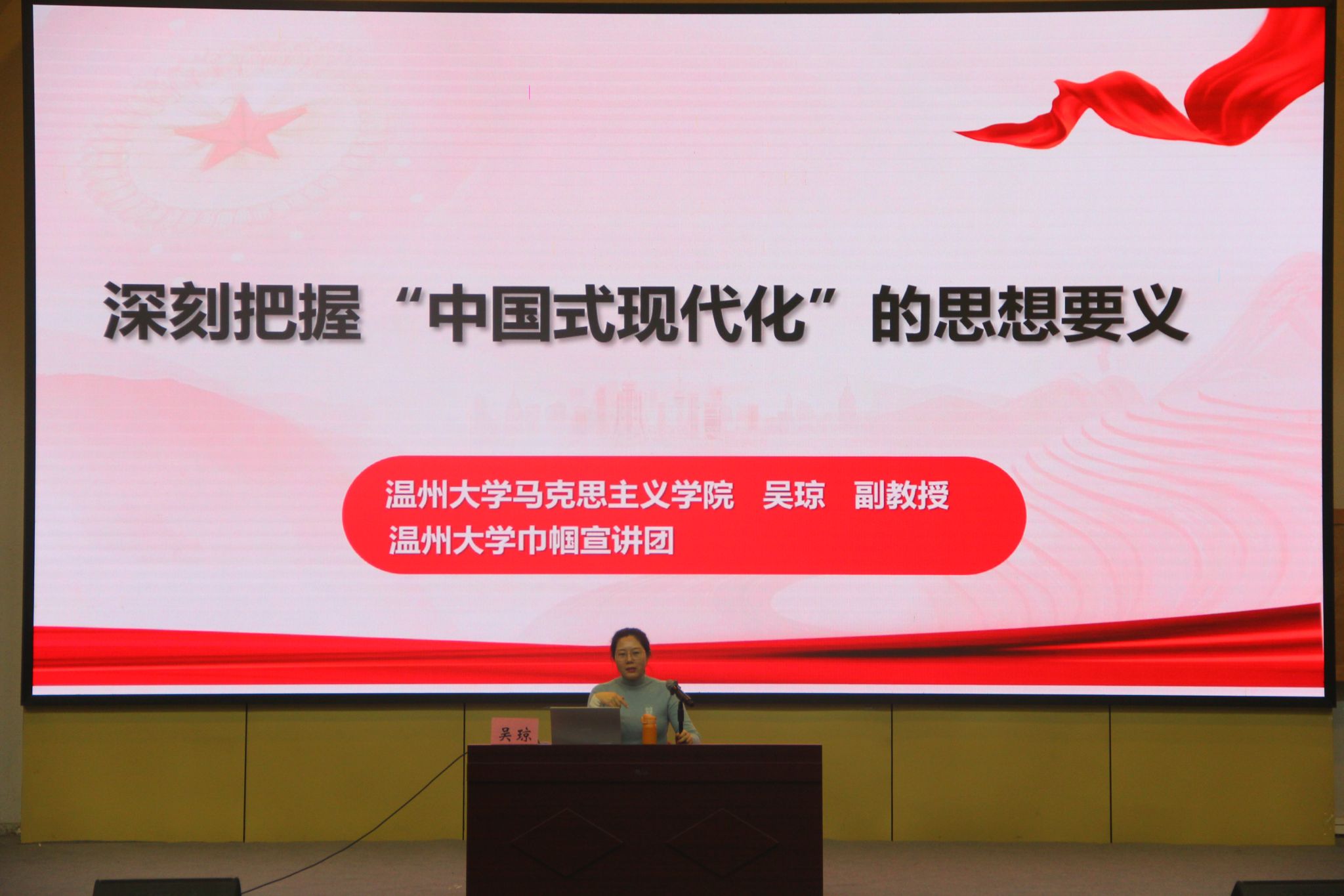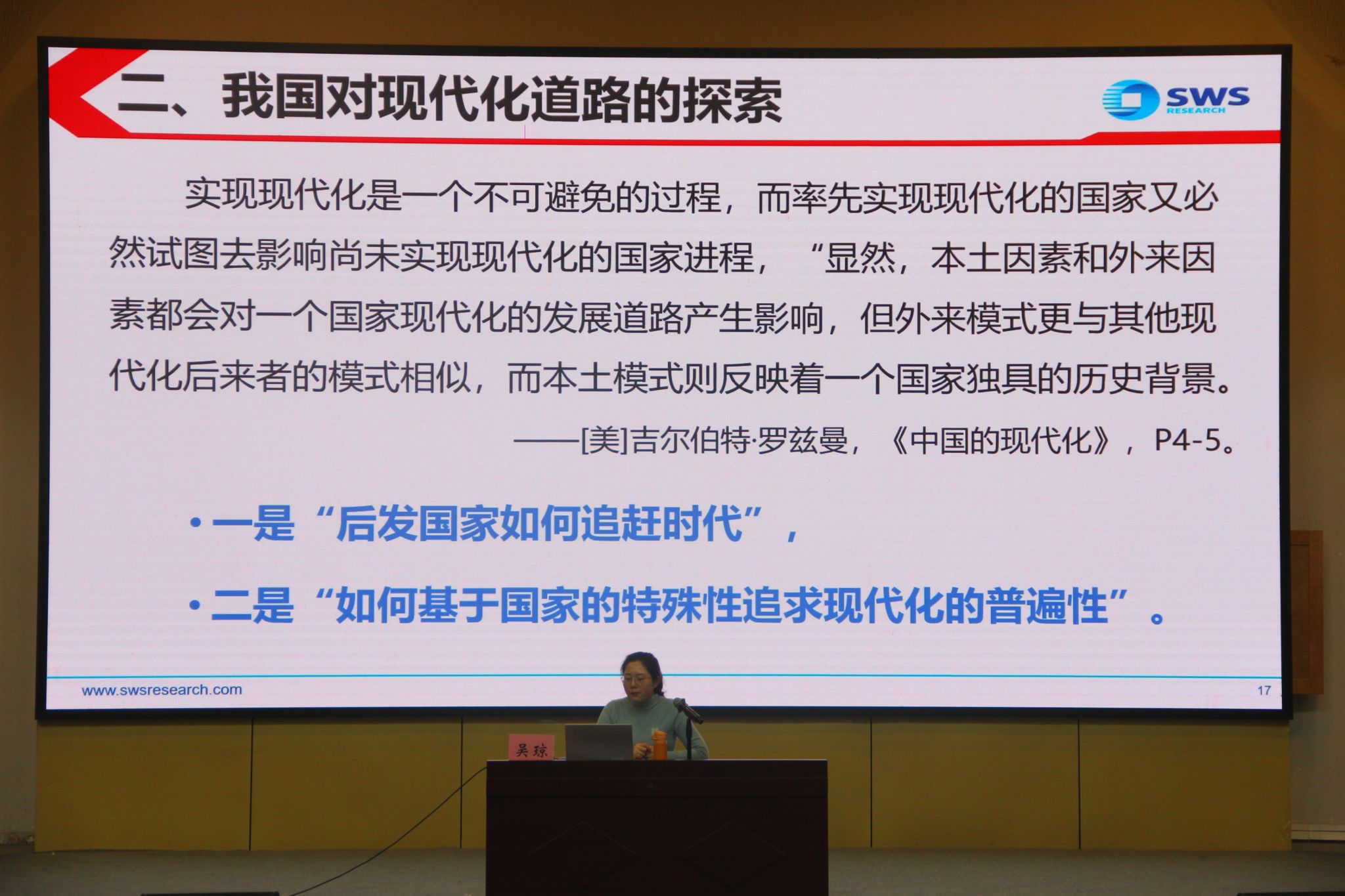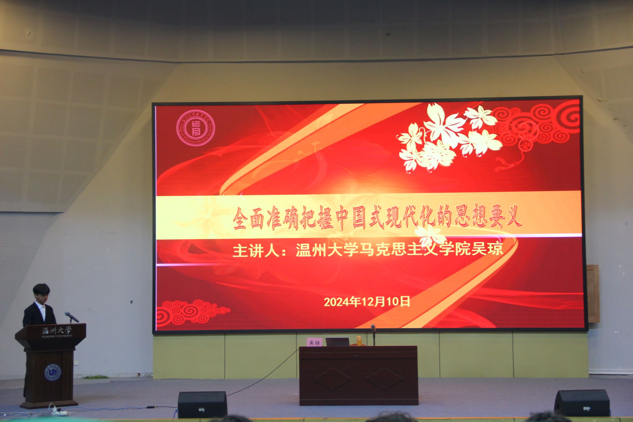 12月11日下午,财神捕鱼 开展了以《全面准确把握中国式现代化的思想要义》为主题的《形势与政策》课,财神捕鱼 马克思主义财神捕鱼 副教授吴琼老师担任本次课程的主讲人。