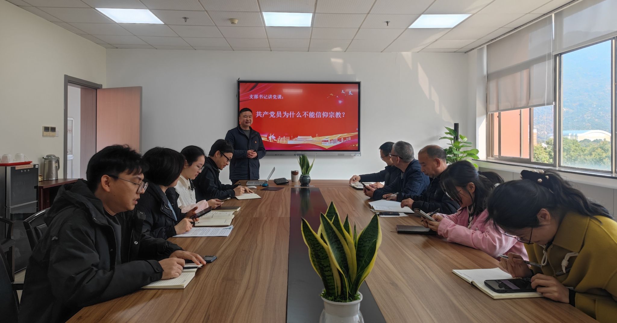 随后进行支部书记上党课环节。本节党课主题为《共产党员为什么不能信仰宗教》。章志图从党员干部为什么不能信仰宗教、《中国共产党章程》对党员不能信仰宗教有什么要求、党内法规对党员不能信仰宗教有哪些规定、党员违反规定参与宗教活动要受到哪些处分等方面进行详细讲解。党课结束后,支部全体党员签署了《共产党员不信教不参教承诺书》。