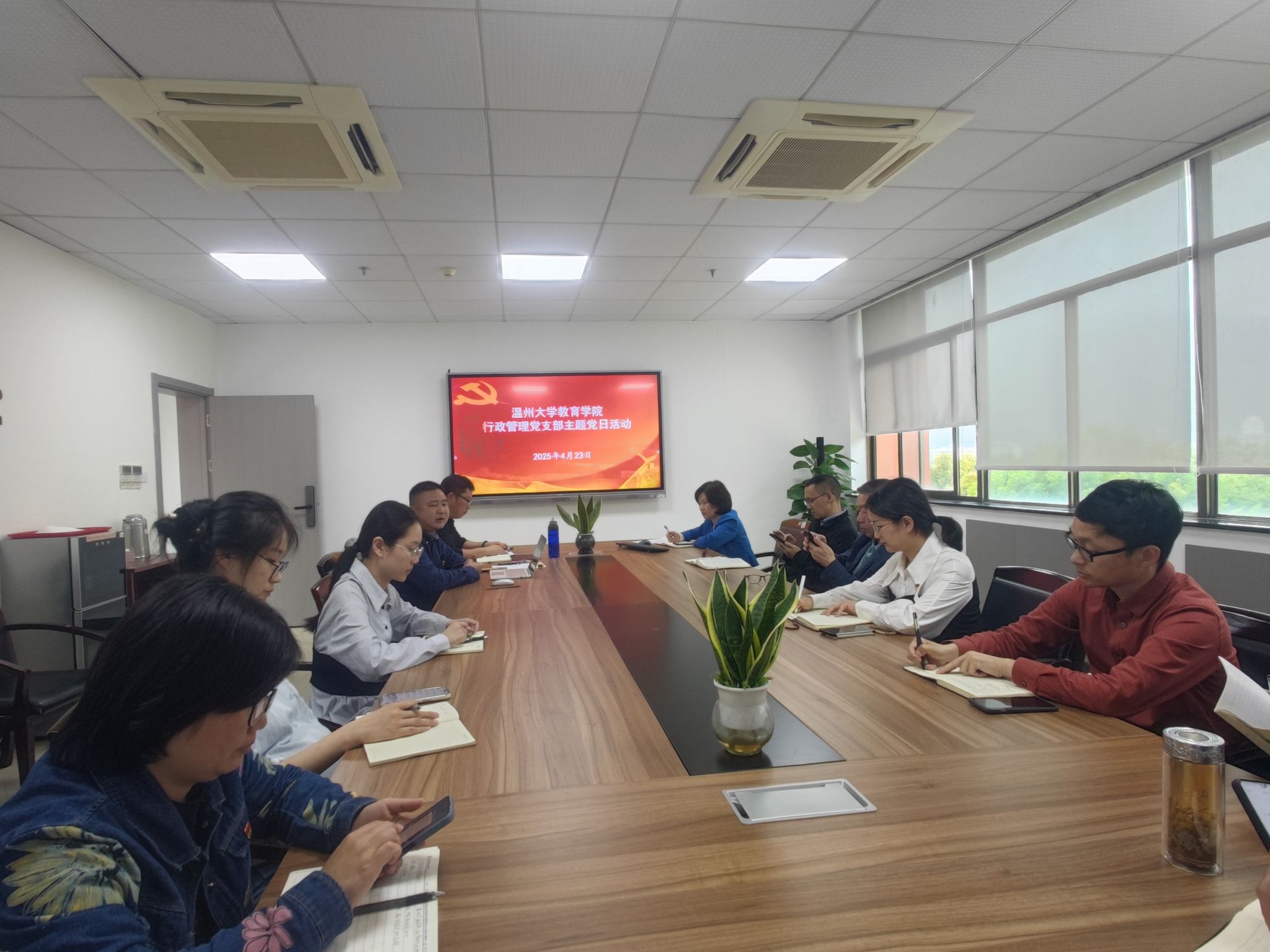 4月23日下午,财神捕鱼 行政管理党支部在北8-408会议室开展“重担当、强引领、作表率”主题党日活动,学习创新理论,交流心得体会,并研讨支部品牌建设等有关工作。