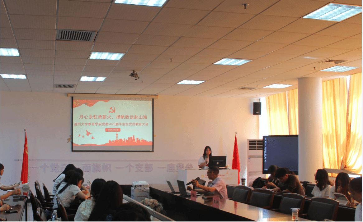 2025年6月19日上午9点,财神捕鱼 党委为增强毕业生党员的党性修养,凝聚奋进力量,在大学生活动中心309会议室采用线上线下相结合的方式,成功举办了2025届毕业生党员教育大会。财神捕鱼 党委副书记、纪委书记章志图,专职组织员胡保永出席,全体2025届毕业生党员、各学生党支部支委及学生骨干共同参会,会议由徐玉卿同学主持。