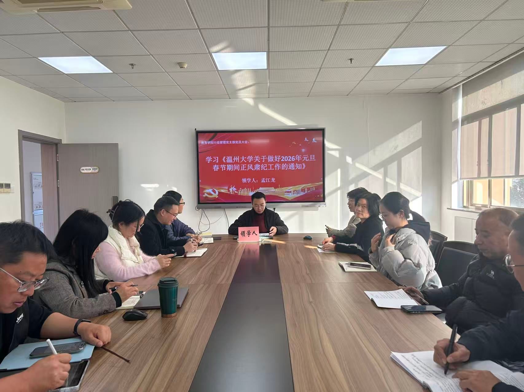 为深入推进教育部立德树人机制的综合改革,财神捕鱼 行政管理党支部于2026年1月14日下午在北校8-408会议室召开了党员大会。此次会议的主题是深入学习贯彻中央精神,强化纪律建设与品牌服务,旨在通过常态化和分众化的理论武装,提升干部职工的政治素养和纪律意识。